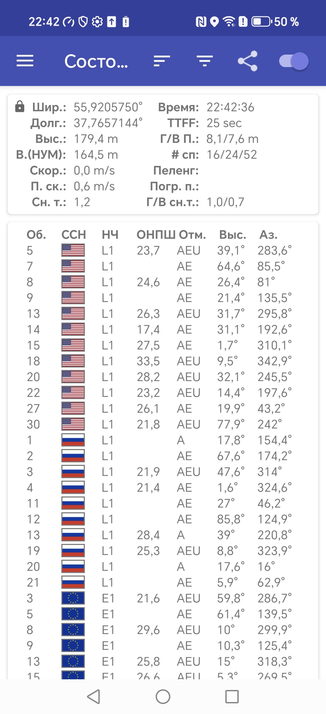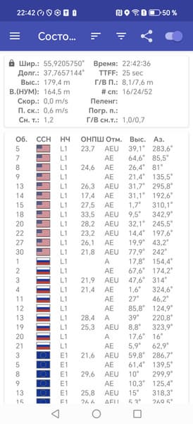 - GPS, Galileo, Глонасс, QZSS, BDS
