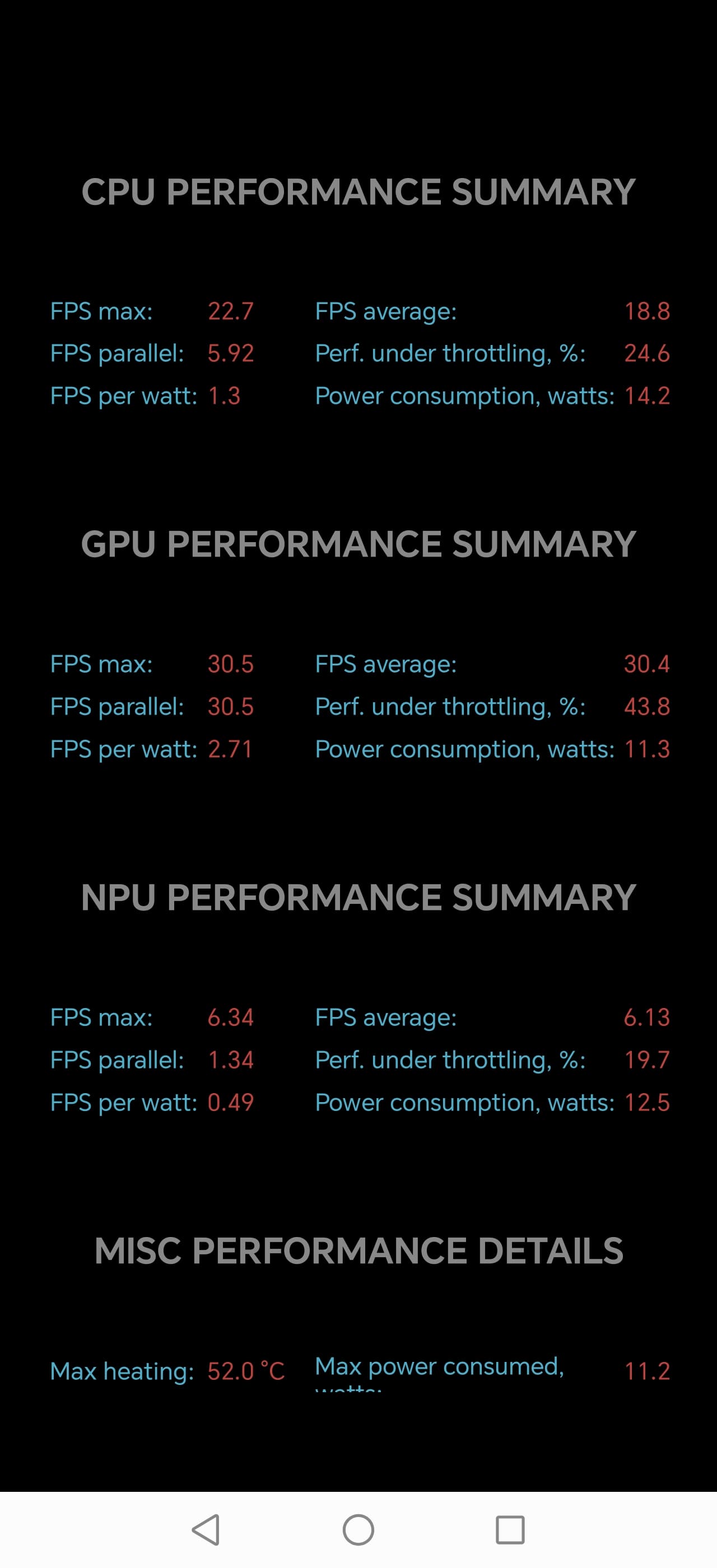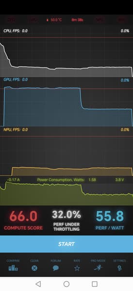 Тест на снижение производительности при нагреве мы проводим с помощью программы Burnout Benchmark, которая позволяет нагружать CPU, GPU и NPU: