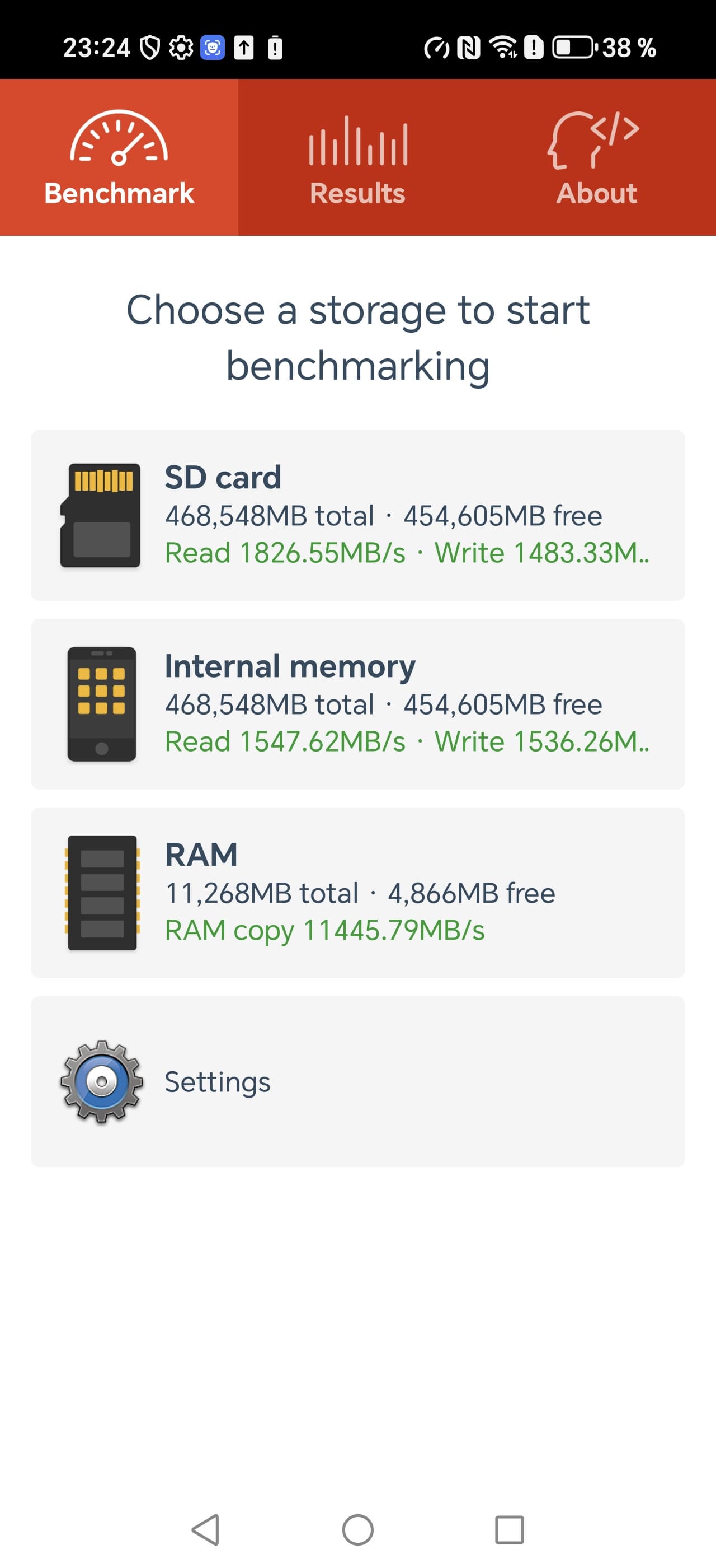 Результаты тестов на скорость работы с памятью: