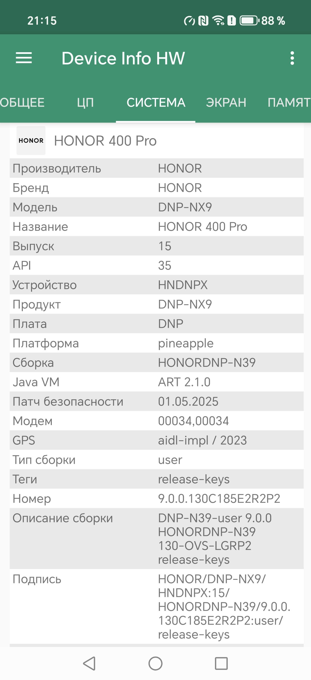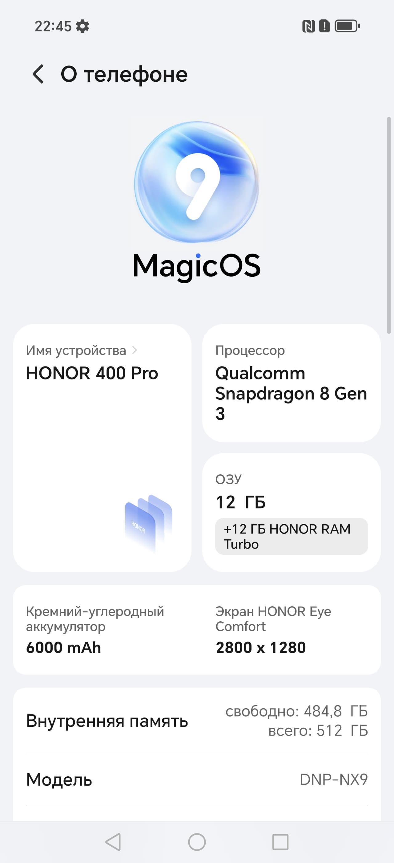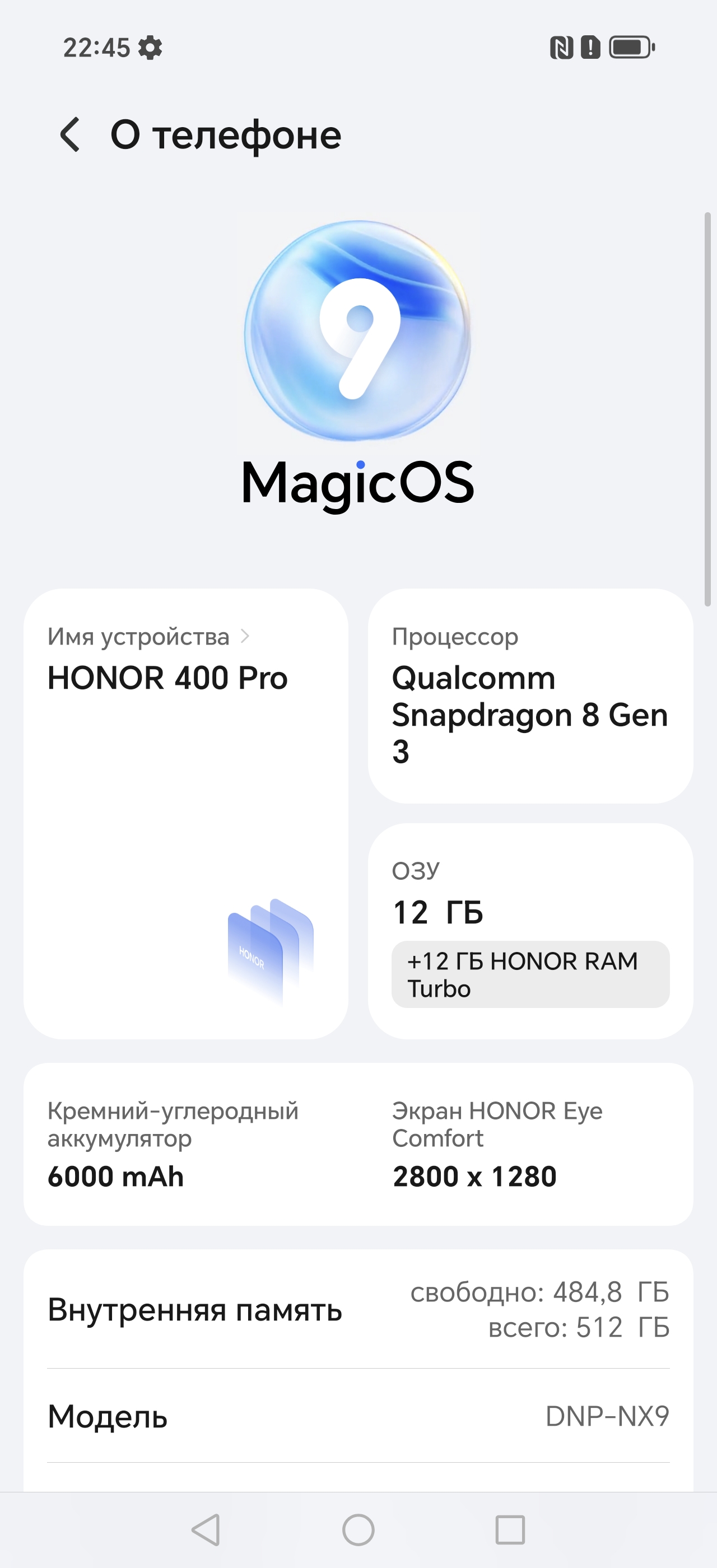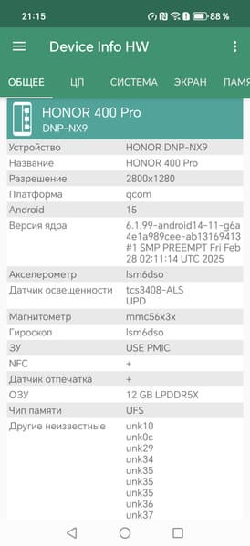 Основные характеристики Honor 400 Pro (модель DNP-NX9)