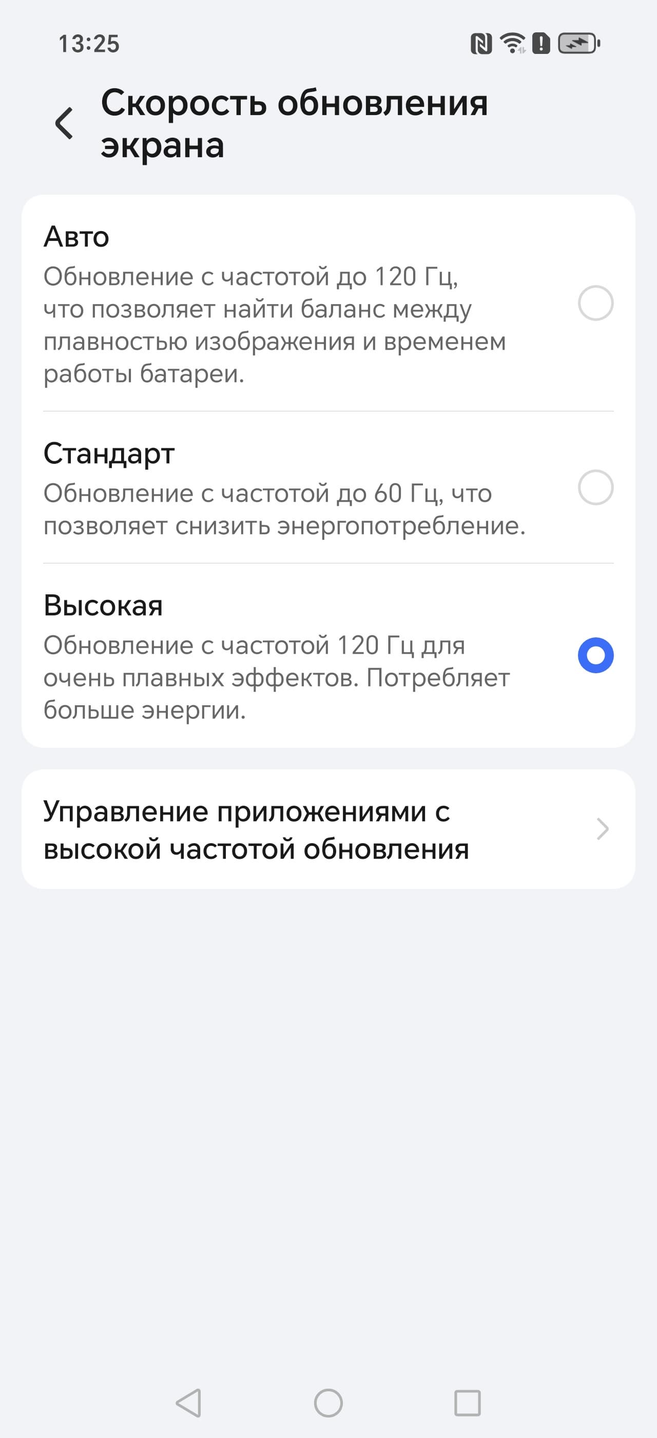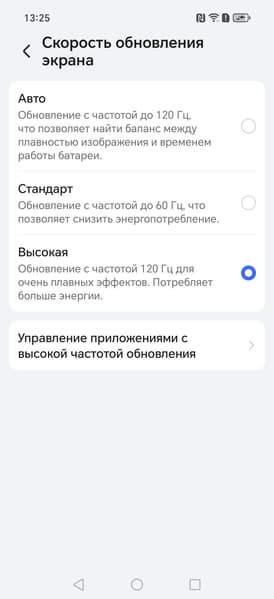 В настройках экрана можно включить режим с повышенной до 120 Гц частотой обновления: