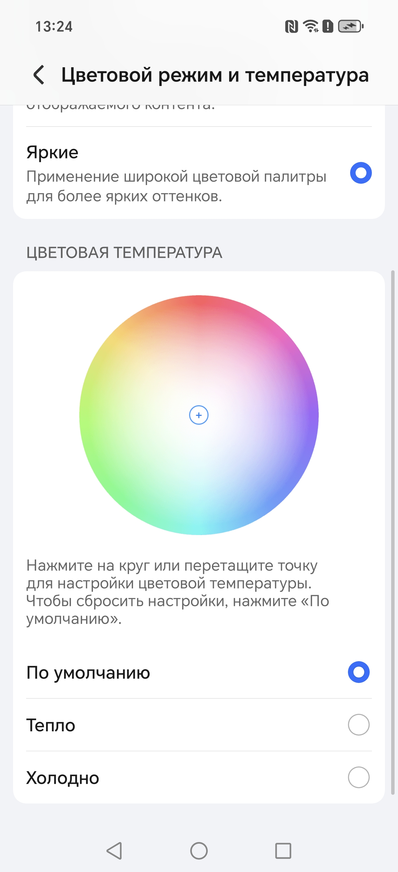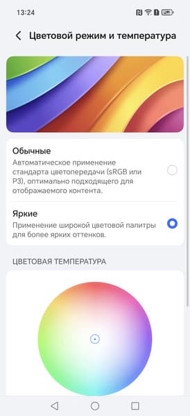 Фотография выше получена при активном профиле Обычные [цвета] в настройках экрана, всего их два: