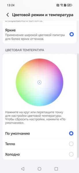В этом устройстве есть возможность скорректировать цветовой баланс с помощью выбора профиля цветовой температуры или регулировки оттенка на цветовом круге.