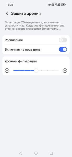 Разумеется есть функция снижения интенсивности синей компоненты: