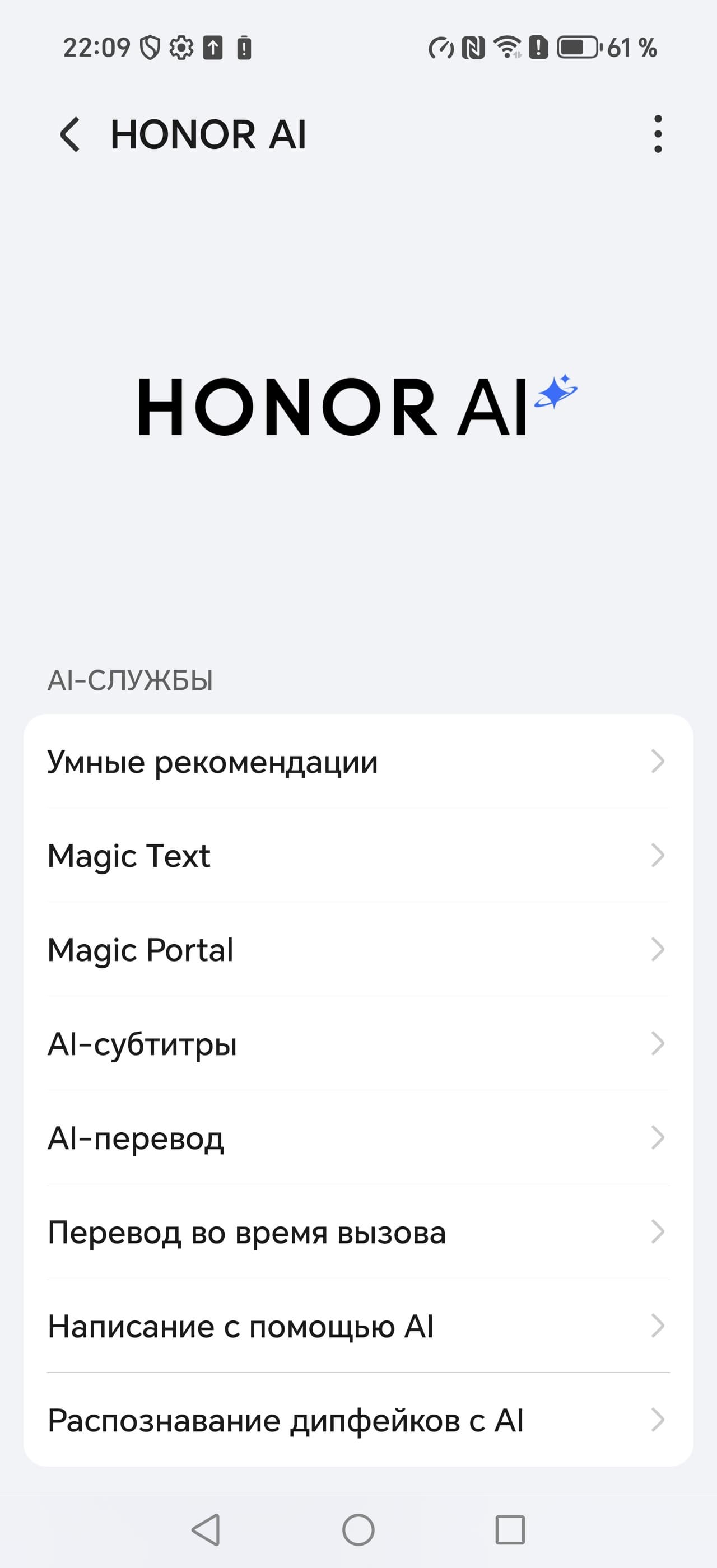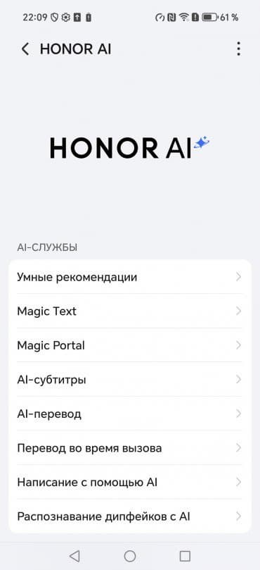 В качестве программной платформы Honor 400 Pro использует ОС Android 15 с оболочкой MagicOS 9. Знакомый интерфейс с хорошей оптимизацией и лаконичной организацией теперь щедро приправлен ИИ-функциями. Все они собраны в разделе настроек Honor AI. Здесь есть возможность расшифровать аудиозапись текстом, выделить костяшкой пальца часть изображения и тут же отправить в иное приложение/мессенджер, переводить телефонные разговоры «на лету», и, конечно же, есть возможность доработки фотографий.