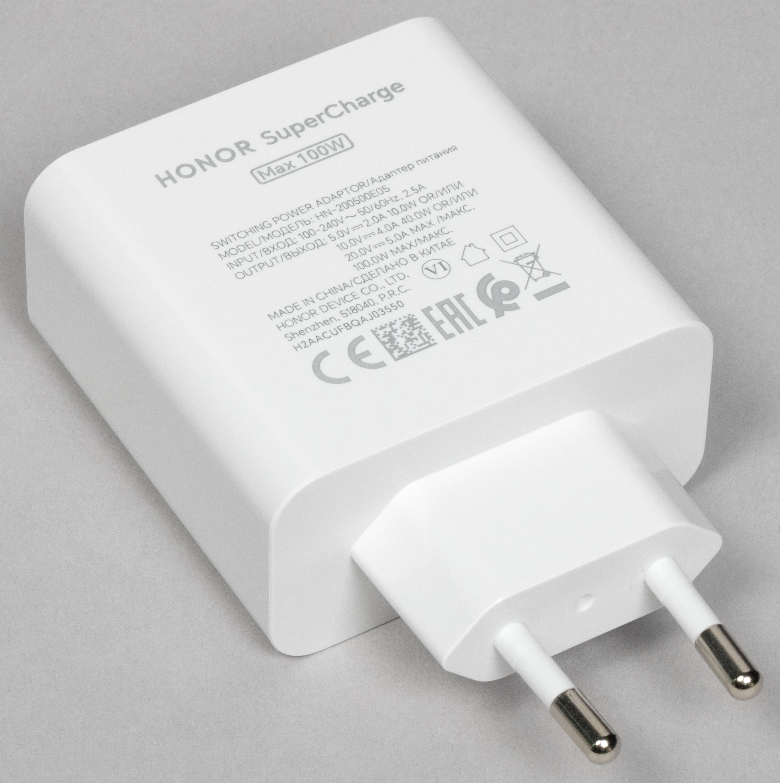 От комплектного зарядного устройства смартфон полностью заряжается не дольше 45 минут. Поддерживается и беспроводная зарядка Honor SuperCharge мощностью 50 Вт. Также смартфон умеет осуществлять обратную (реверсивную) зарядку других устройств, как проводную, так и беспроводную.