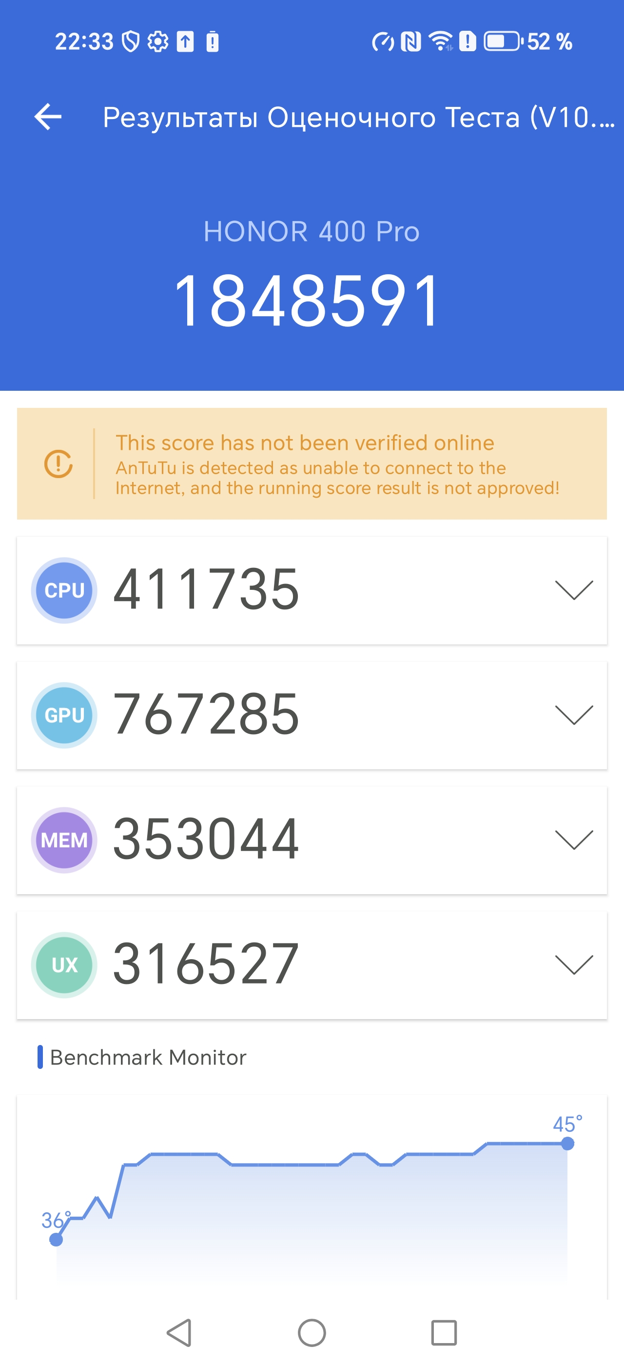 | AnTuTu (v10.x) (больше — лучше) | 1848591 | 1911804 | 755597 | 806671 | 730514 |
