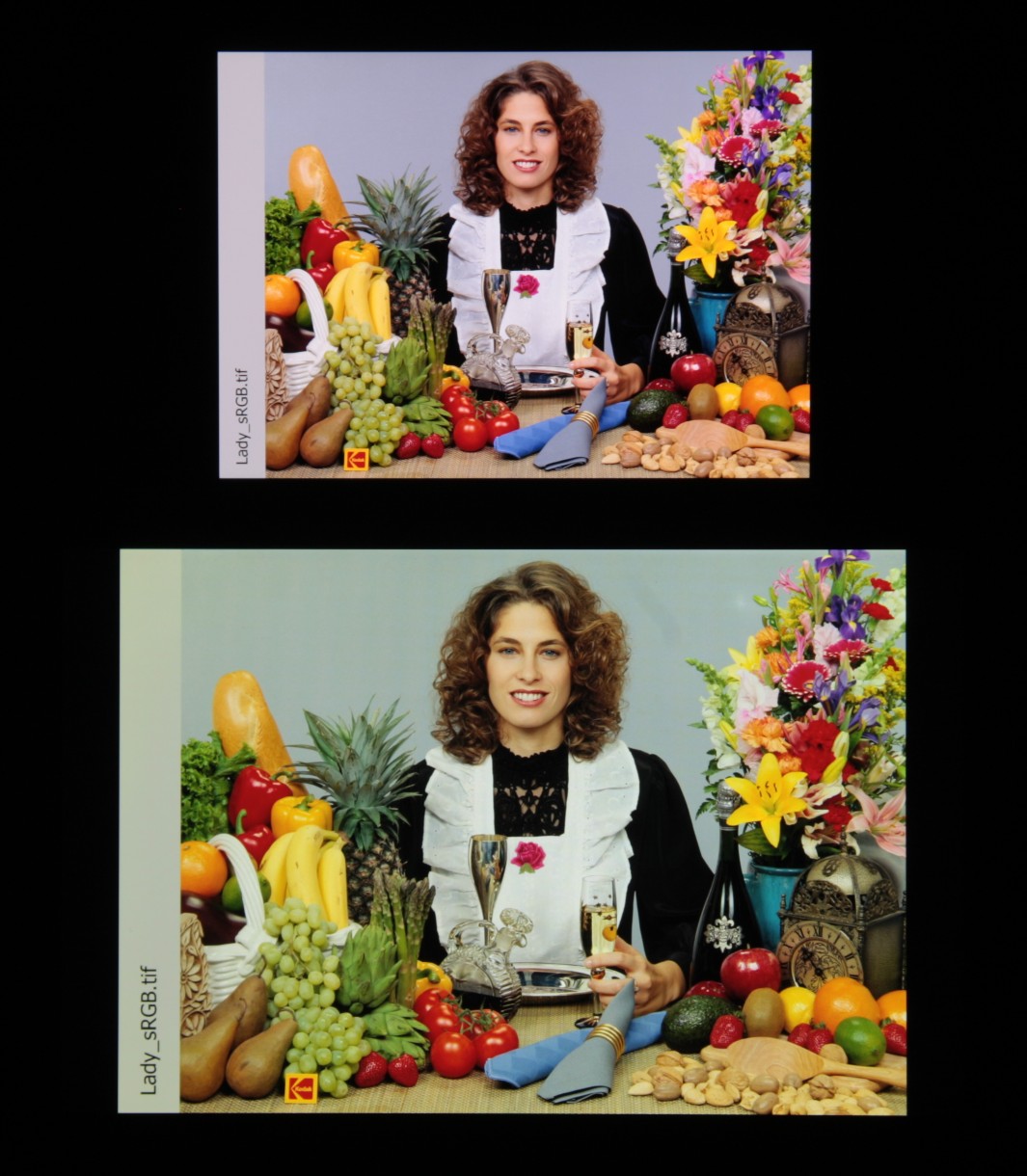 Отметим, что на экранах с уширенным цветовым охватом (без соответствующей коррекции) цвета́ обычных изображений, оптимизированных для устройств sRGB, выглядят неестественно насыщенными. Отсюда и рекомендация: в большинстве случаев смотреть кино, фотографии и все естественное лучше при выборе профиля Обычные. При этом, если в изображении прописан отличный от sRGB профиль, то смотреть его лучше с использованием штатной программы Галерея.