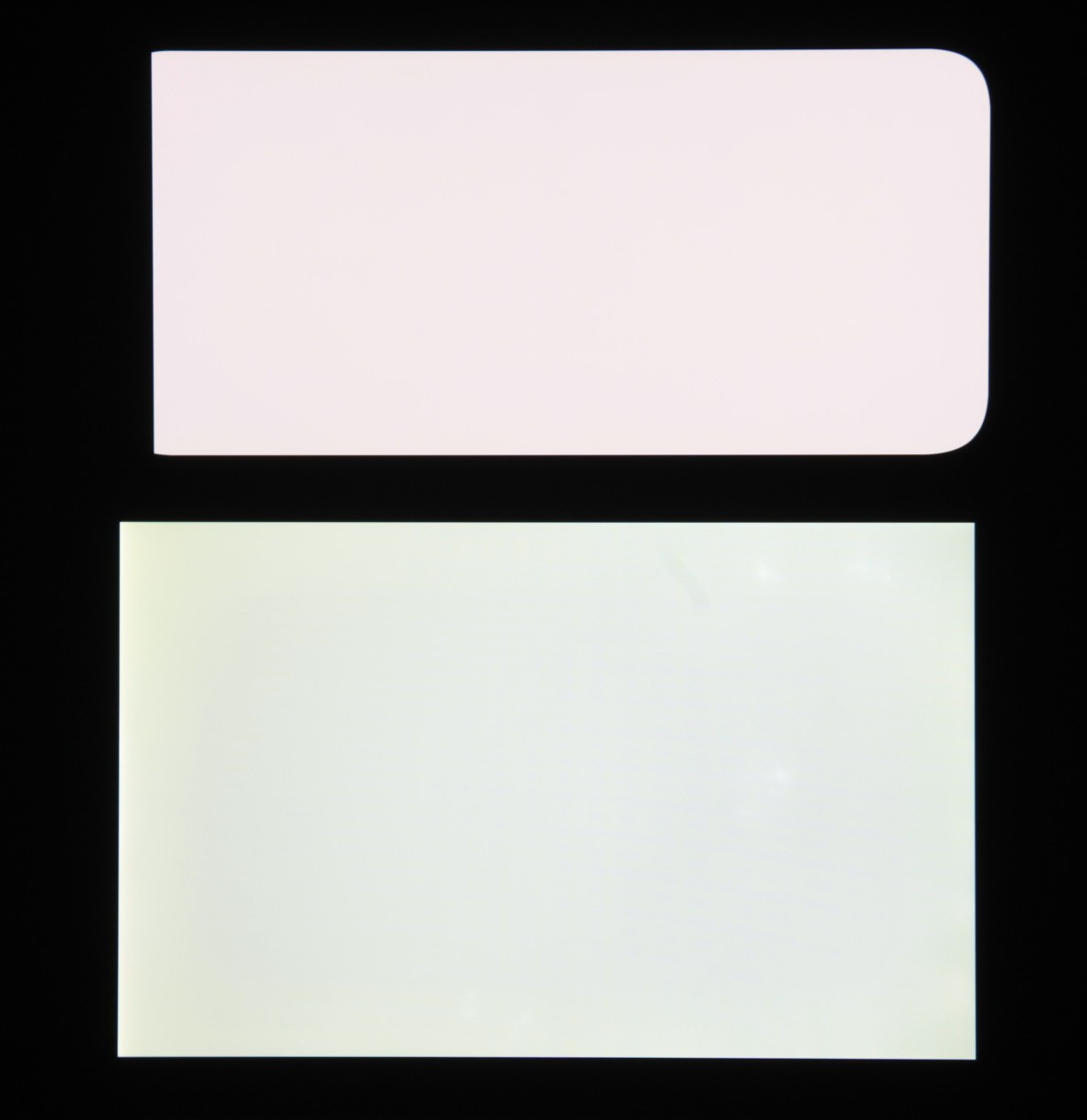 Экран характеризуется великолепными углами обзора. Яркость под углом у обоих экранов заметно уменьшается (если сравнивать с Nexus 7), но в случае смартфона падение яркости выражено гораздо меньше. В итоге, даже если установить формально одинаковую яркость, то экран этого смартфона визуально выглядит гораздо более ярким (в сравнении с ЖК-экранами), так как на экран мобильного устройства часто приходится смотреть как минимум под небольшим углом. Правда, у смартфона белый цвет при отклонении на очень большие углы приобретает легкий сине-зеленый оттенок, но черный цвет остается просто черным под любыми углами. Он настолько черный, что параметр контрастности в данном случае неприменим. Для сравнения приведем фотографии, на которых на экраны смартфона и второго участника сравнения выведены одинаковые изображения, при этом яркость экранов изначально установлена примерно на 200 кд/м², а цветовой баланс на фотоаппарате принудительно переключен на 6500 К.
