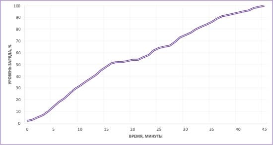 Подключаем зарядку. На экране появляется значок с двумя молниями, это означает «супербыструю» зарядку. Чтобы произвести впечатления, телефон показывает уровень заряда с точностью до сотых долей процента — цифры бегут, наглядно видно скорость.
