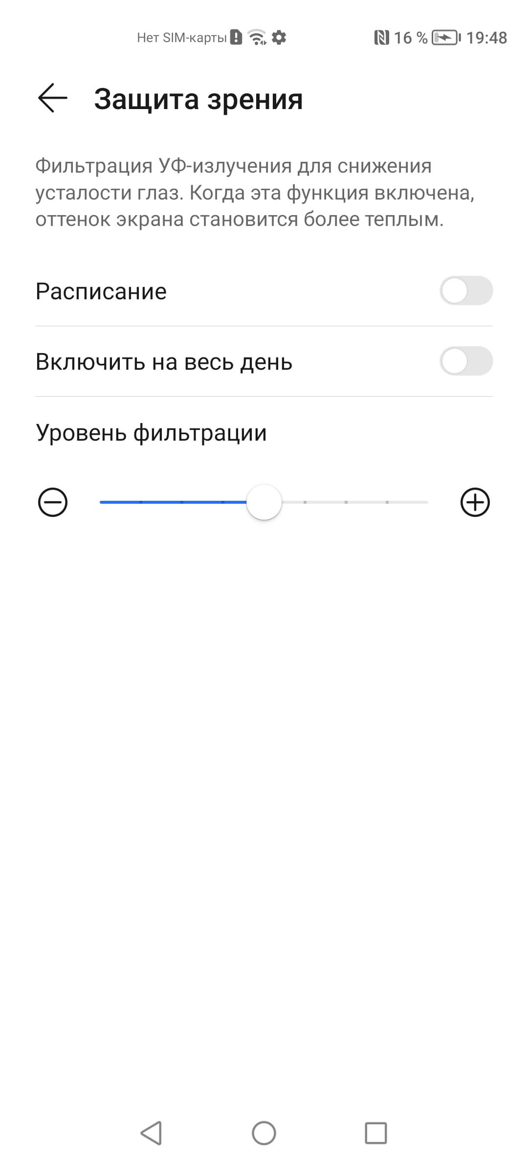 Присутствует уже традиционная настройка, позволяющая снизить интенсивность синей компоненты.