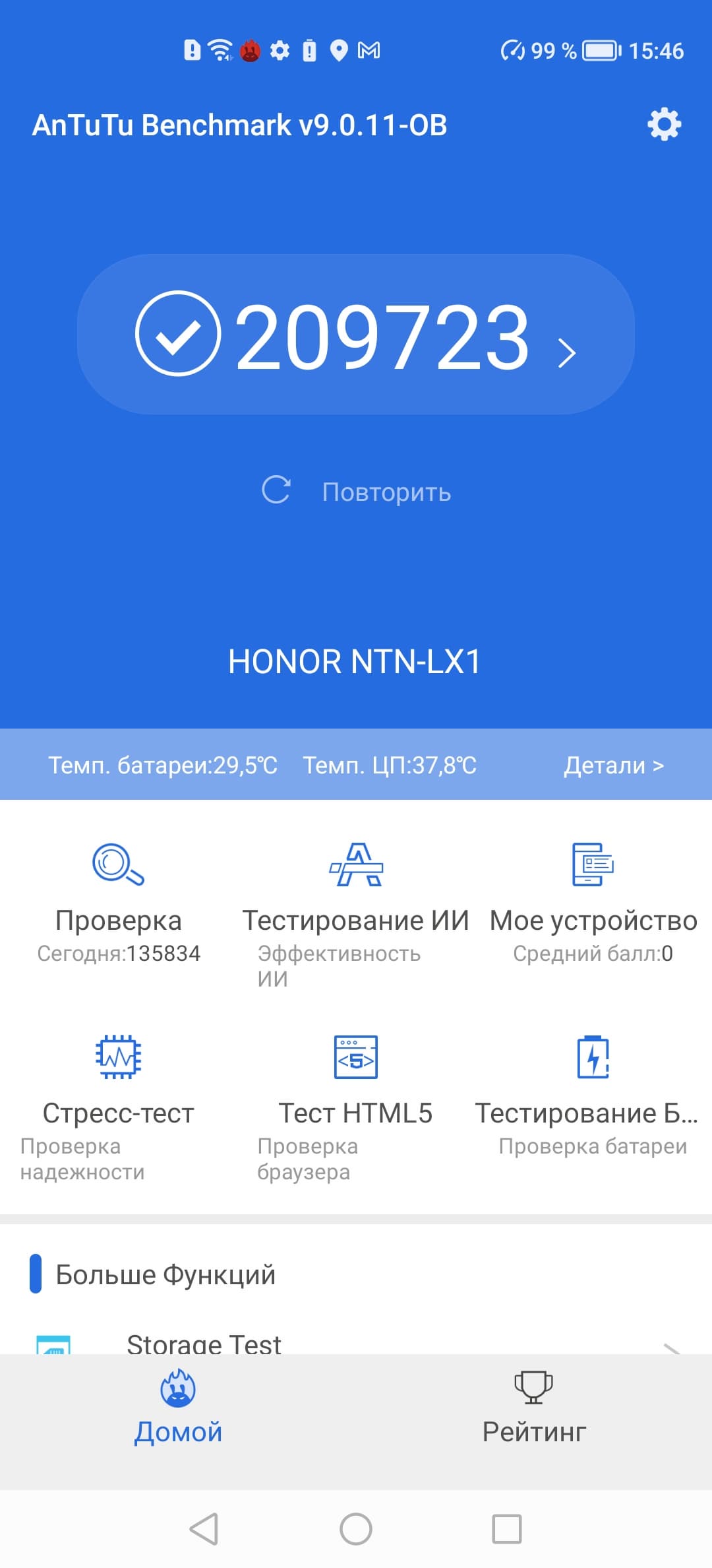 Тестирование в комплексных тестах AnTuTu и GeekBench: