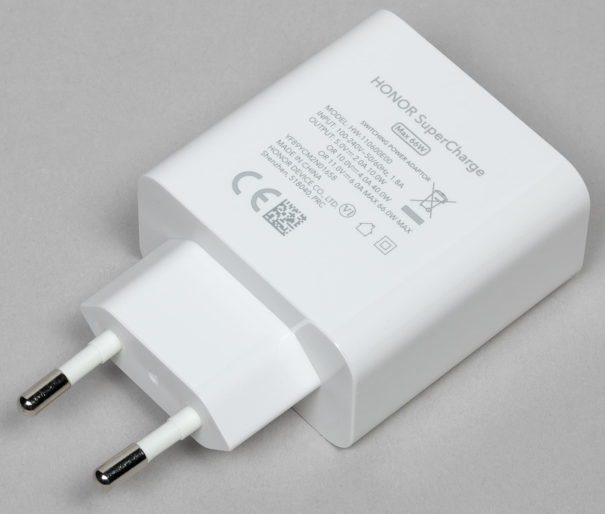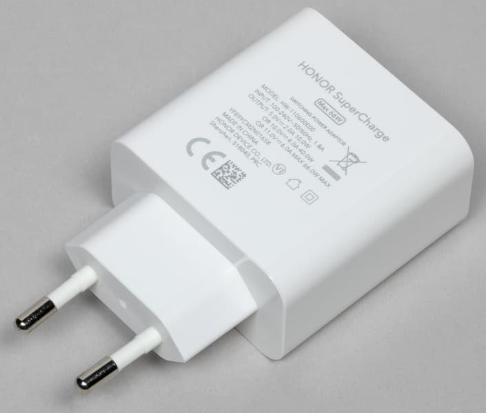 В комплекте со смартфоном идет соединительный кабель USB-C и мощное сетевое зарядное устройство с выходной мощностью 66 Вт.
