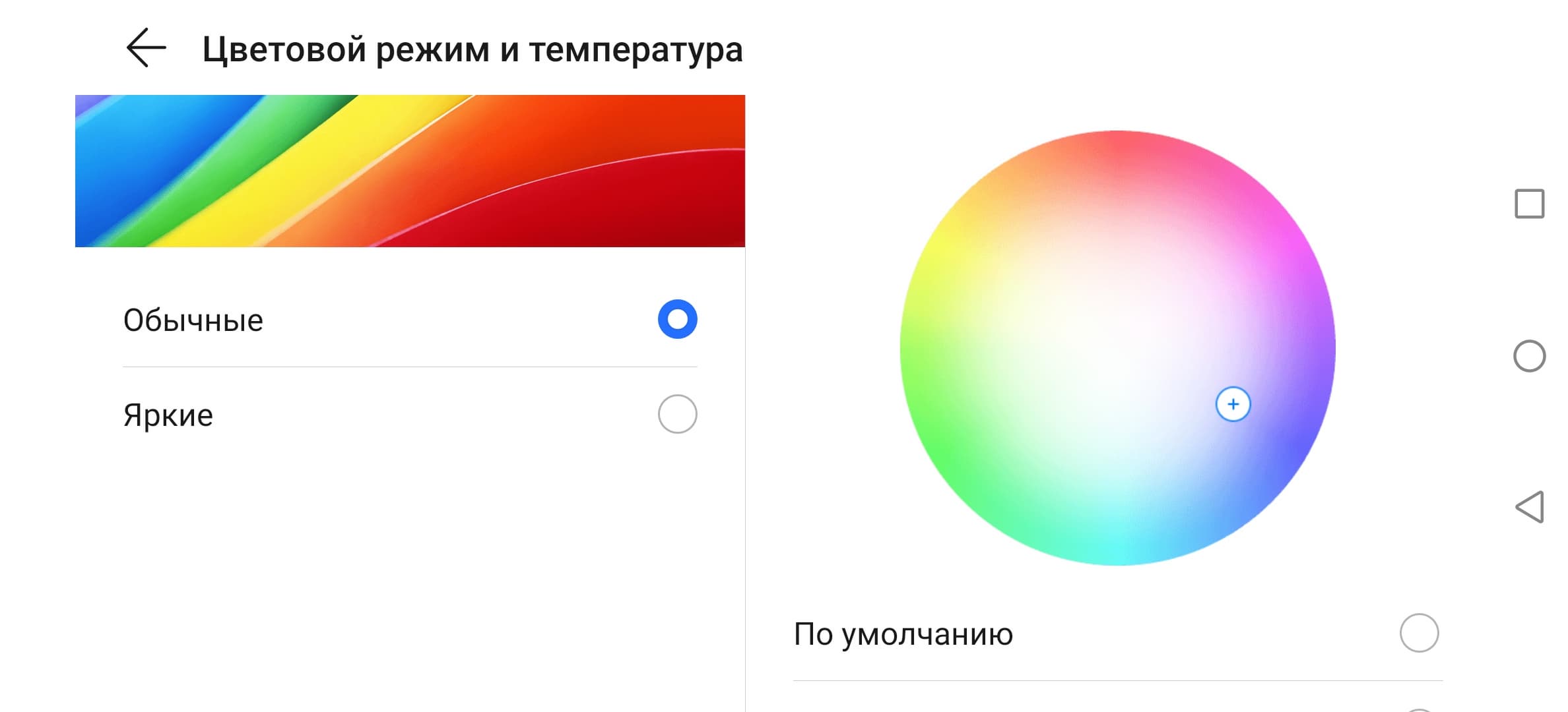 Впрочем, не все так плохо: при выборе профиля Обычные в настройках экрана охват сжимается до границ sRGB: