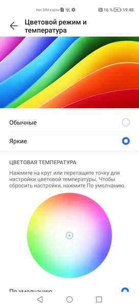 В этом устройстве есть возможность скорректировать цветовой баланс с помощью регулировки оттенка на цветовом круге или просто выбором одного из трех предустановленных профилей.