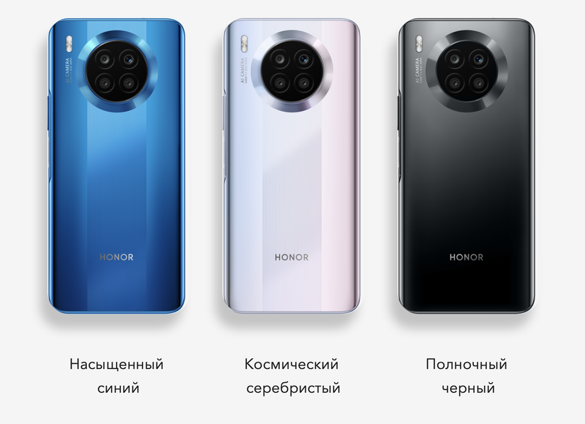 Honor 50 Lite выпускается в трех цветовых вариантах: «Насыщенный синий», «Космический серебристый» и «Полночный черный». Корпус не получил полноценной защиты от воды и пыли.