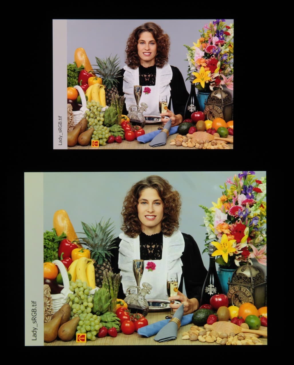 Отметим, что на экранах с уширенным цветовым охватом (без соответствующей коррекции) цвета́ обычных изображений, оптимизированных для устройств sRGB, выглядят неестественно насыщенными. Отсюда и рекомендация: в большинстве случаев смотреть кино, фотографии и все естественное лучше при выборе профиля Обычные.