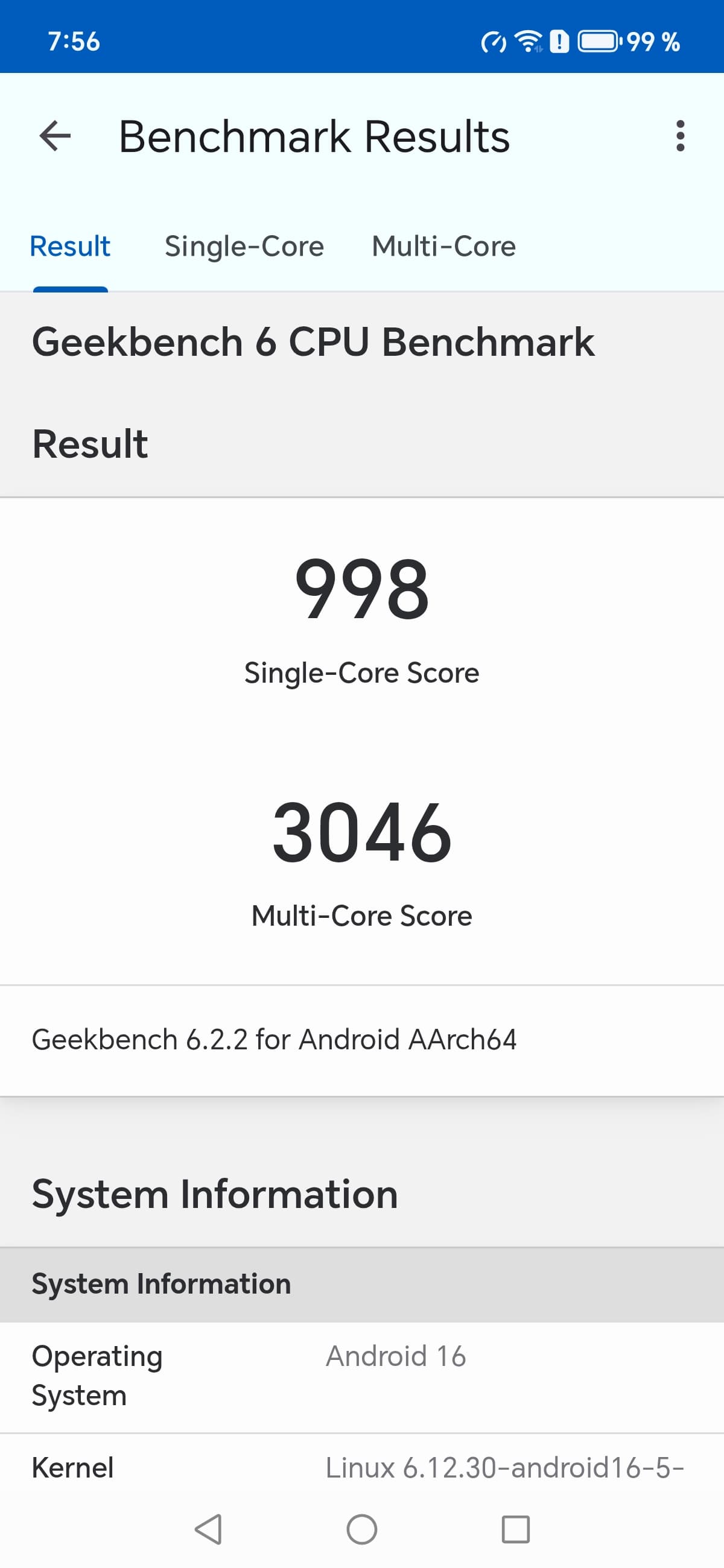 | GeekBench 6 (больше — лучше) | 998/3046 | 1227/3139 | 2761/9360 | 3262/9777 | 1280/4240 |