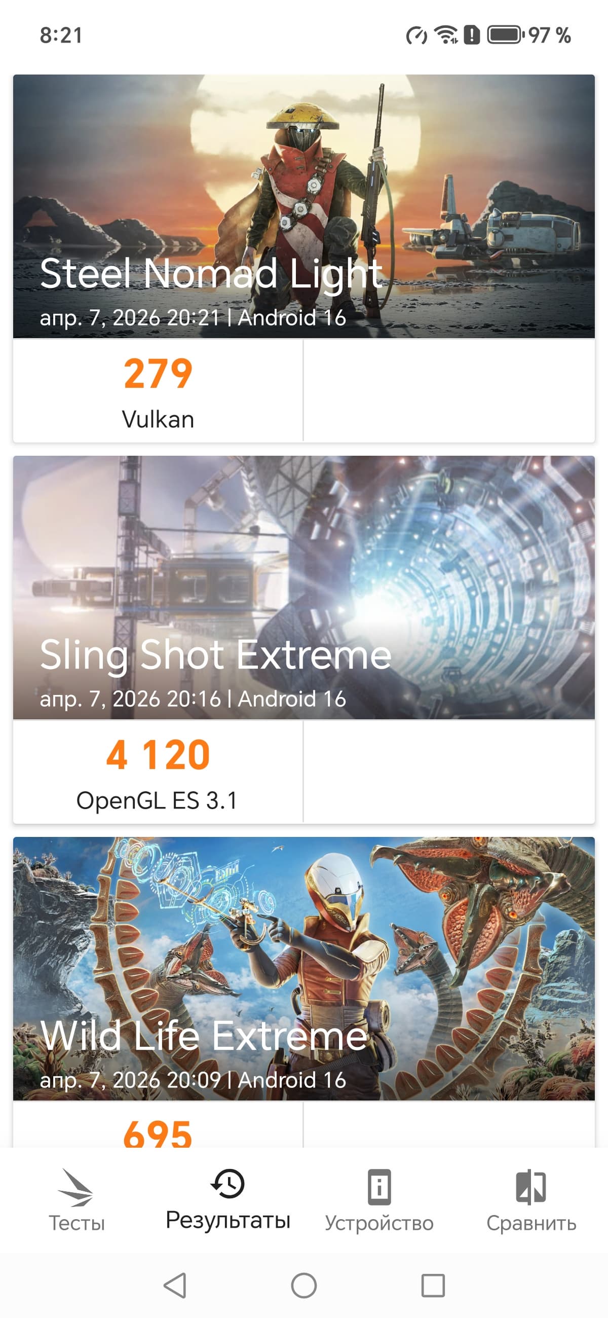 | AnTuTu (v11.x) (больше — лучше) | 664896 | 1048331 | 2808823 | 3191134 | 1155267 |