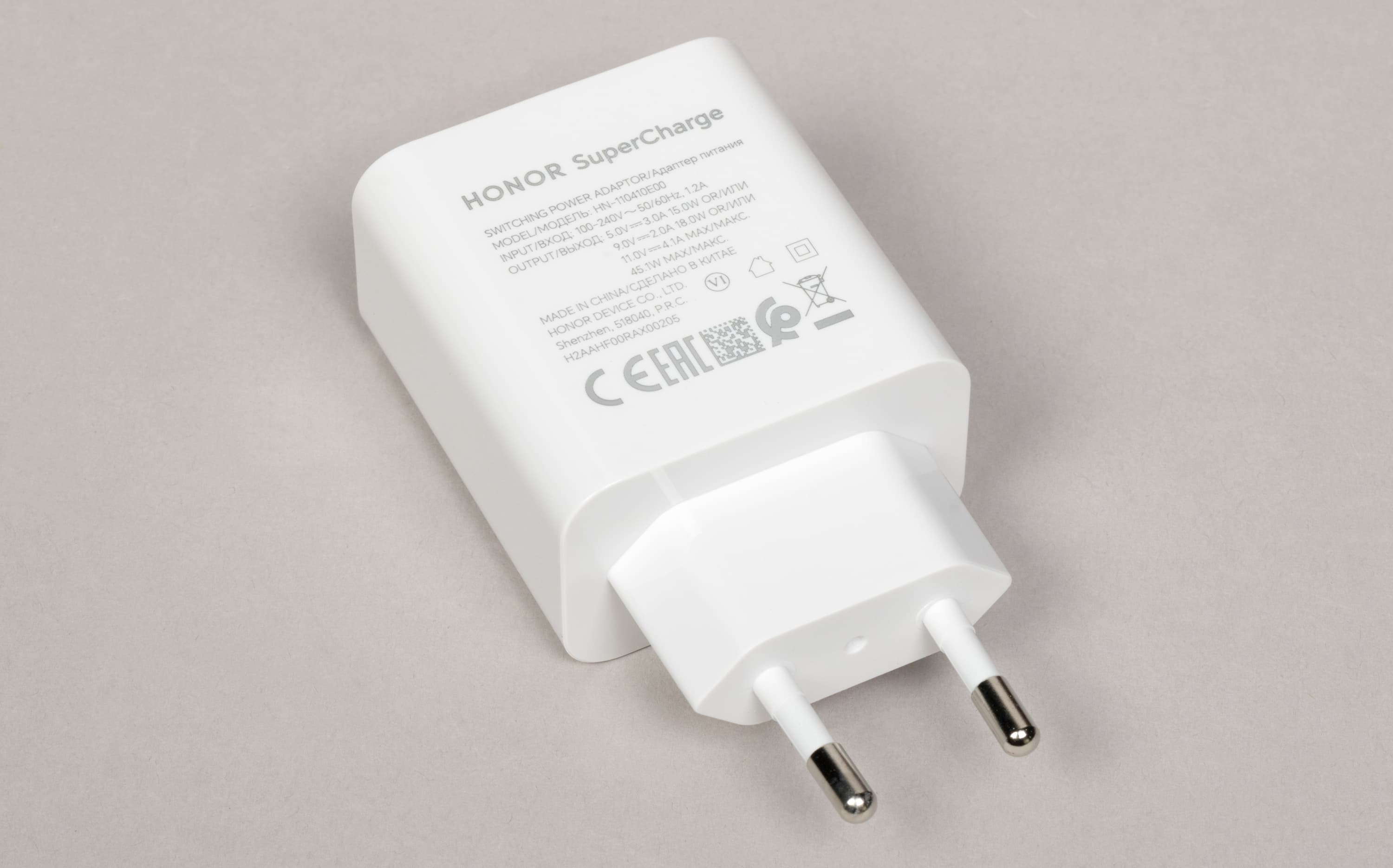 Комплект поставки включает соединительный кабель, защитный чехол и сетевое зарядное устройство с выходной мощностью 45 Вт.