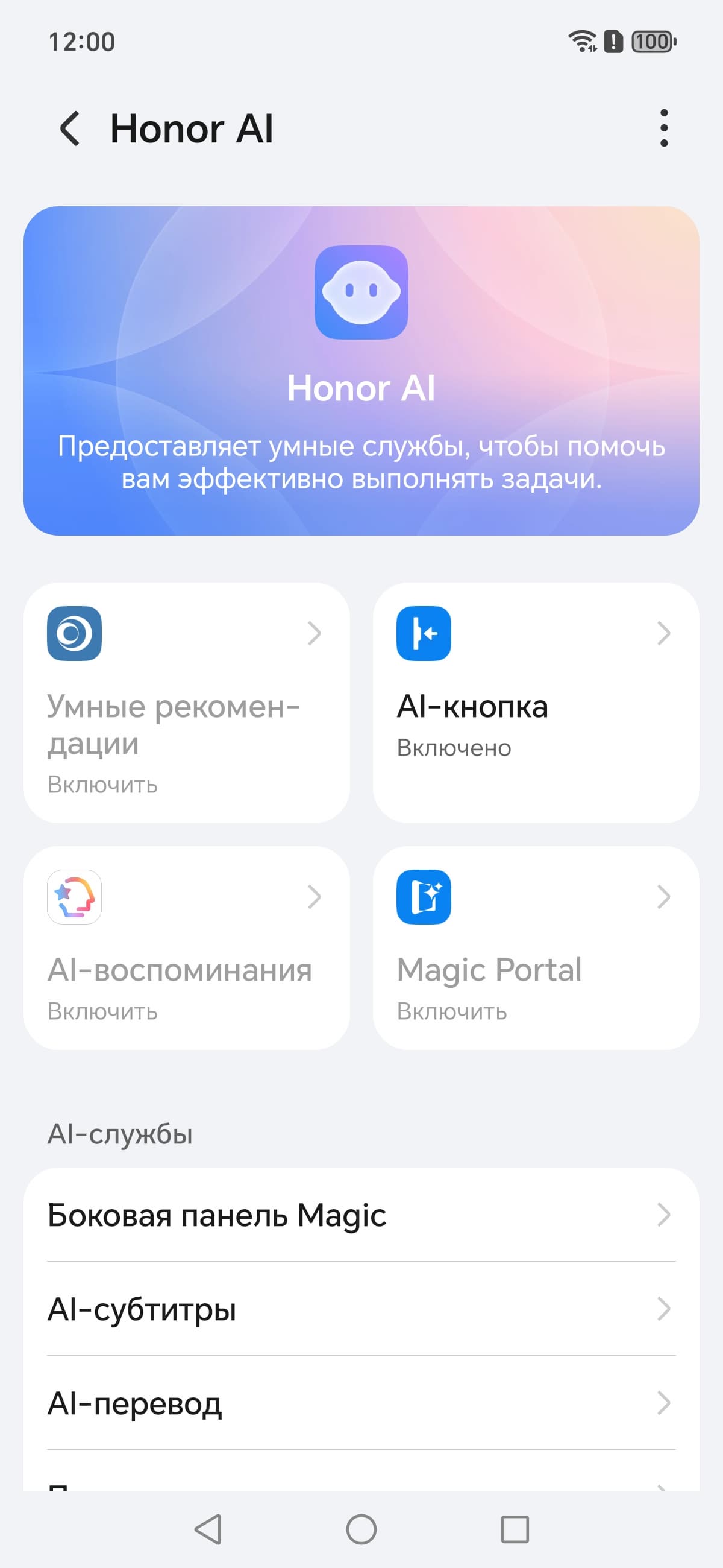 Согласно, опять же, современной моде, на боку установлена еще одна, дополнительная кнопка, для быстрого вызова приложений или функций, которые можно задать самостоятельно (Honor называет ее «AI-кнопкой»). Кнопка механическая, но установлена вровень с поверхностью, ее нужно вдавливать, случайно она не нажмется, и это огромный плюс по сравнению с решениями конкурентов. Те, во-первых, чаще устанавливают эту кнопку на противоположном боку, а во-вторых, делают податливой. И как следствие, при взятии телефона в руку такая кнопка непреднамеренно нажимается. Здесь такое невозможно.
