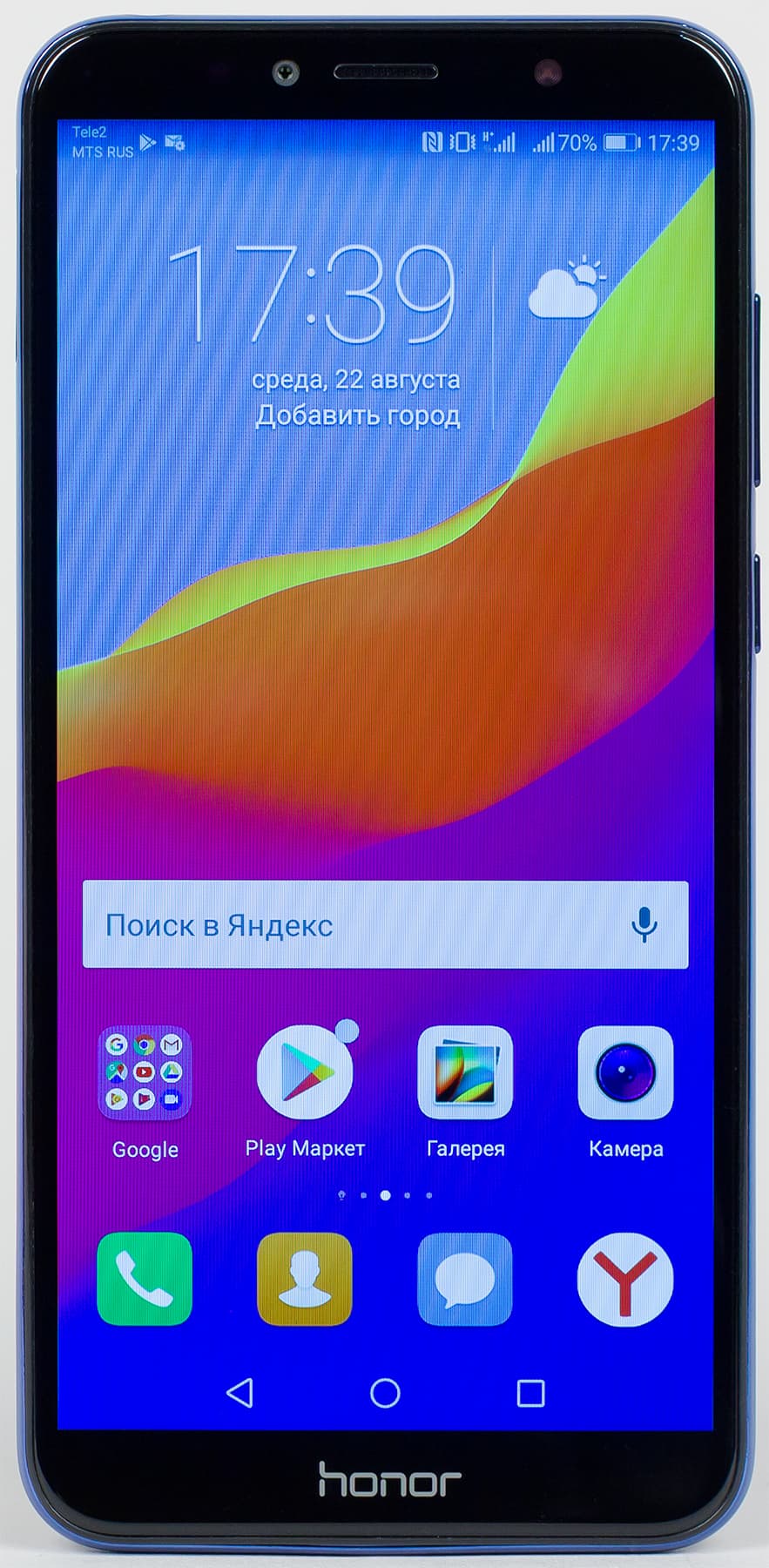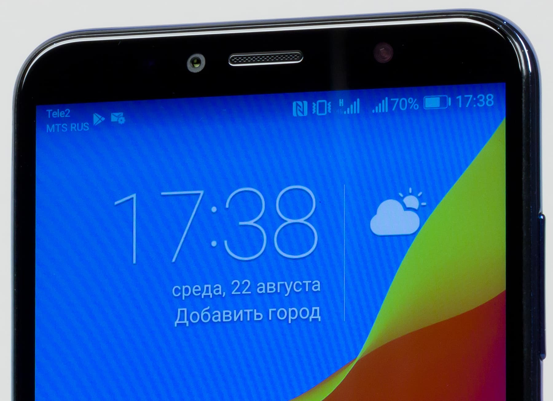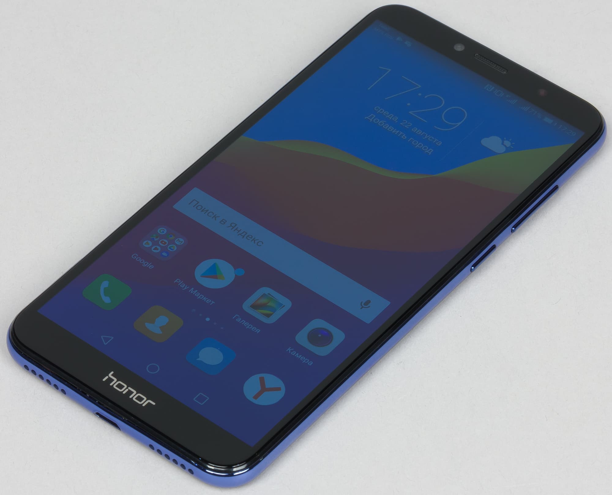 Экран у Honor 7C немного светлее (яркость по фотографиям 127 против 118 у Nexus 7). Двоение отраженных объектов в экране Honor 7C очень слабое, это свидетельствует о том, что между слоями экрана (конкретнее между внешним стеклом и поверхностью ЖК-матрицы) нет воздушного промежутка (экран типа OGS — One Glass Solution). За счет меньшего числа границ (типа стекло/воздух) с сильно различающимися коэффициентами преломления такие экраны лучше смотрятся в условиях интенсивной внешней засветки, но вот их ремонт в случае потрескавшегося внешнего стекла обходится гораздо дороже, так как менять приходится экран целиком. На внешней поверхности экрана, возможно, есть специальное олеофобное (жироотталкивающее) покрытие, но если оно и есть, то по эффективности гораздо хуже, чем у Nexus 7, поэтому следы от пальцев удаляются почти так же трудно, а появляются с примерно такой же скоростью, как и в случае обычного стекла.