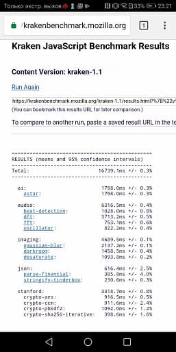 Что касается бенчмарков для оценки скорости движка javascript, то стоит всегда делать скидку на то, что в них результаты существенно зависят от браузера, в котором запускаются, так что сравнение может быть истинно корректным только на одинаковых ОС и браузерах, а такая возможность имеется при тестировании не всегда. В случае с ОС Android мы всегда стараемся использовать Google Chrome.