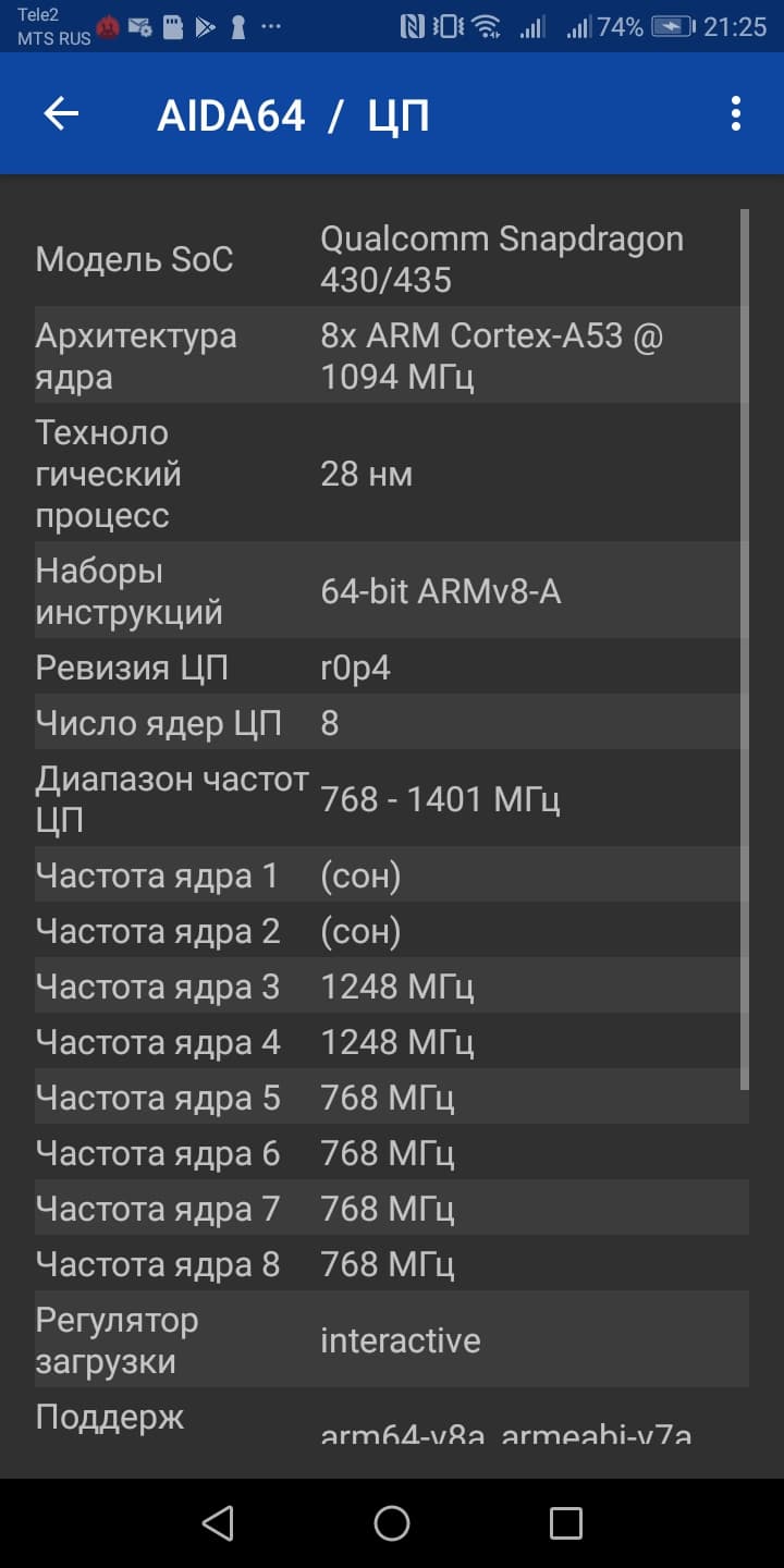 - SoC Qualcomm Snapdragon 435, 8 ядер ARM Cortex-A53 @1,4/1,1 ГГц
