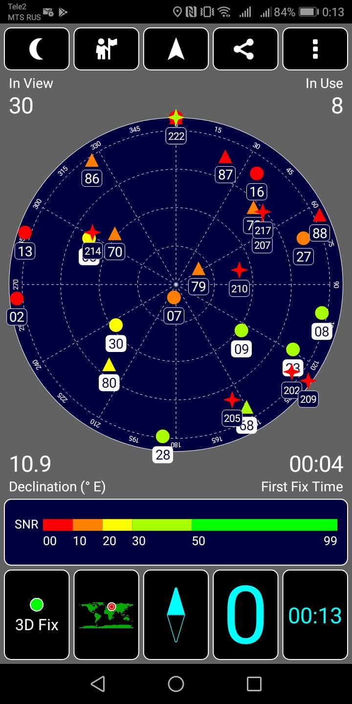 Навигационный модуль работает и с GPS (с A-GPS), и с отечественной Глонасс, и с китайской Beidou. Первые спутники даже при холодном старте обнаруживаются в течение минуты. А вот магнитный компас, необходимый для навигационных программ, в смартфоне отсутствует.