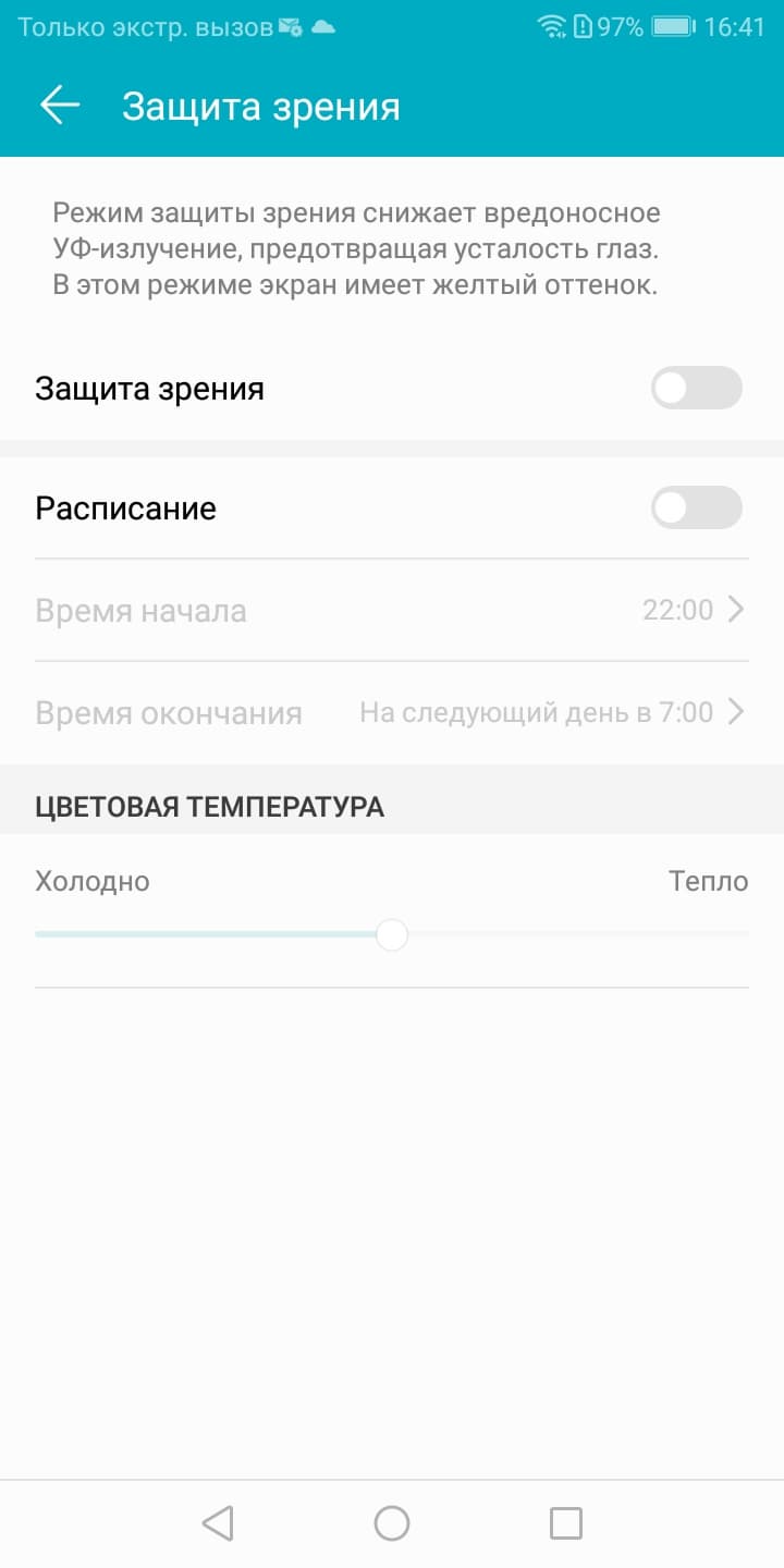 Присутствует модная настройка, позволяющая снизить интенсивность синей компоненты.