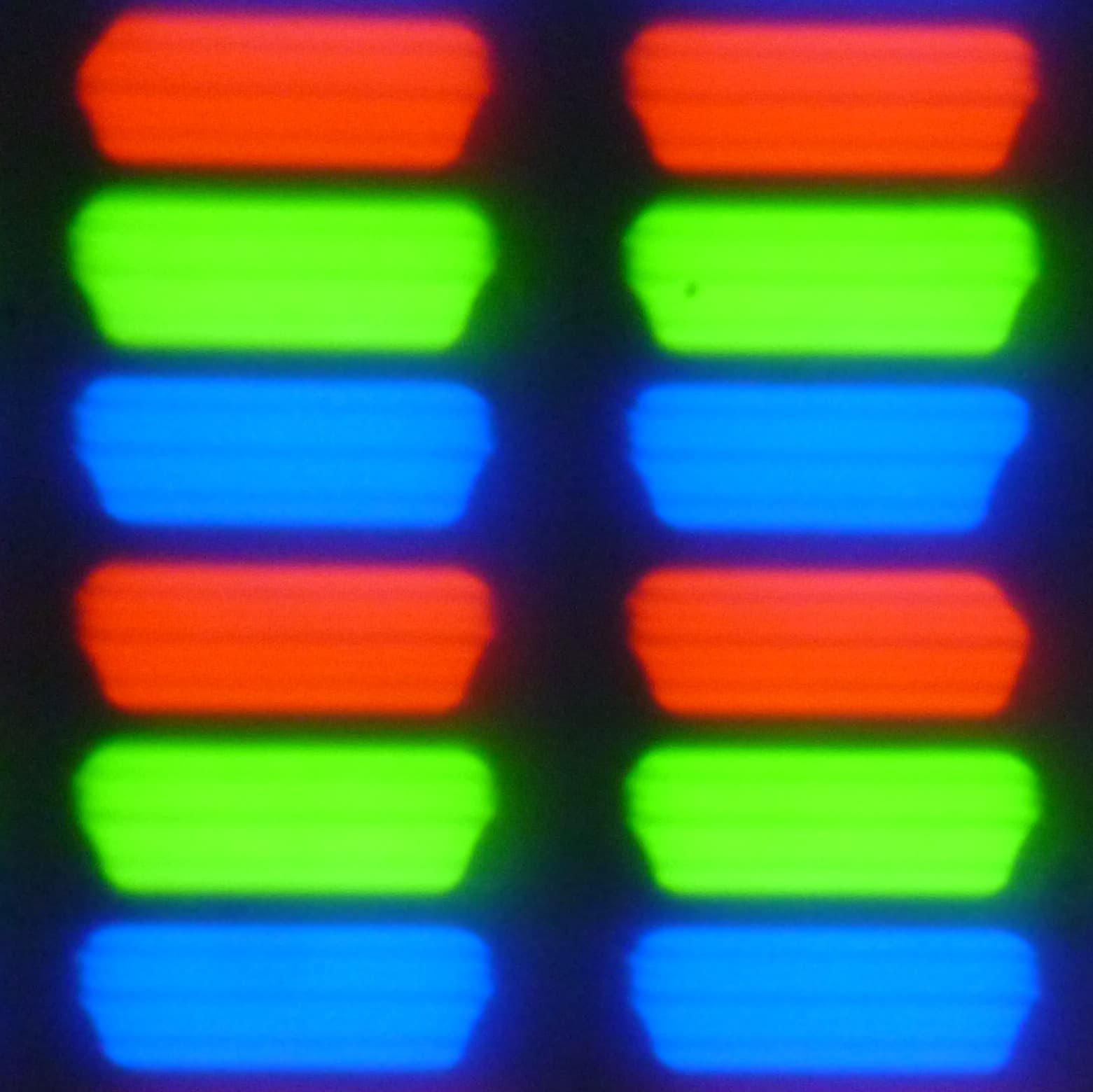 В данном смартфоне используется матрица типа IPS. Микрофотографии демонстрируют типичную для IPS структуру субпикселей: