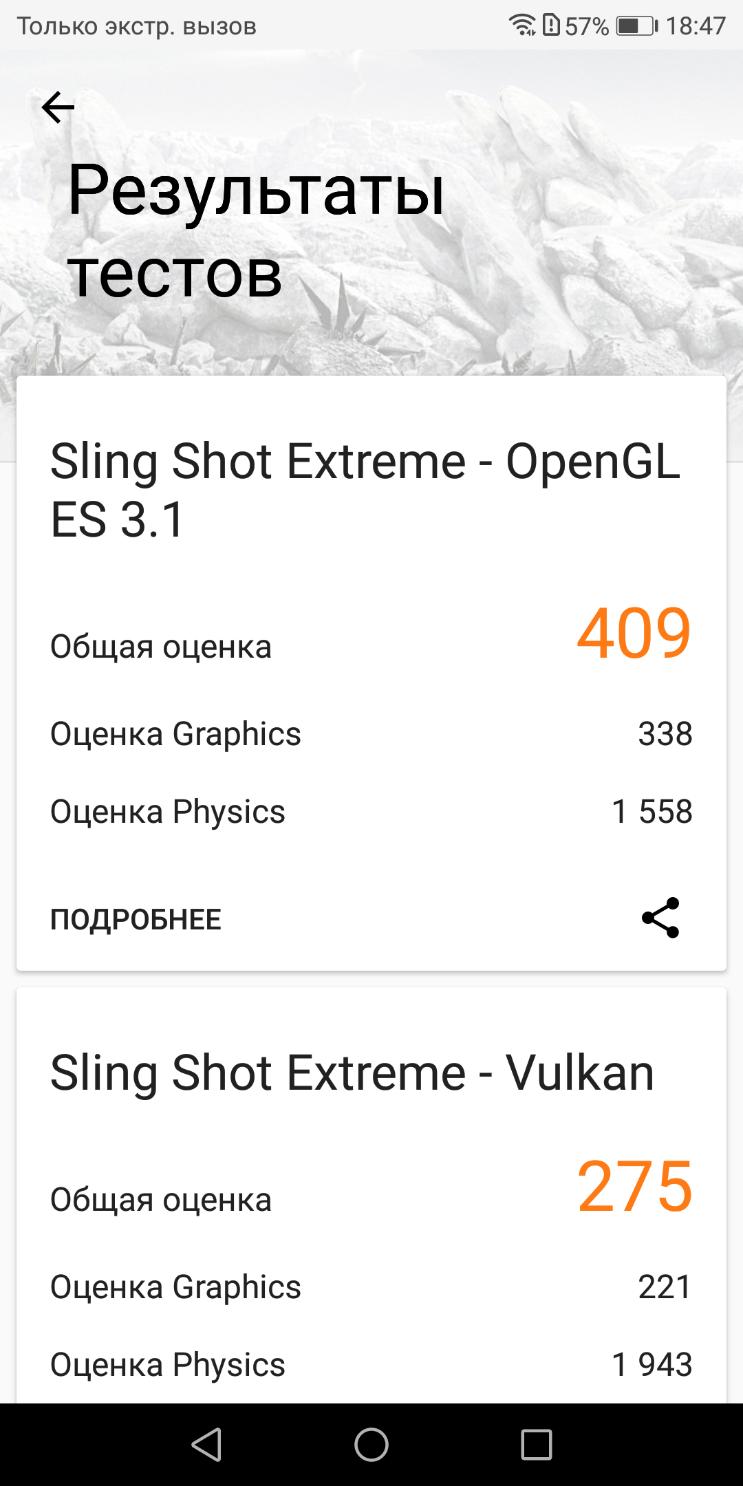 | 3DMark Ice Storm Sling Shot ES 3.1 (больше — лучше) | 409 | 671 | 421 | 466 | 299 |
