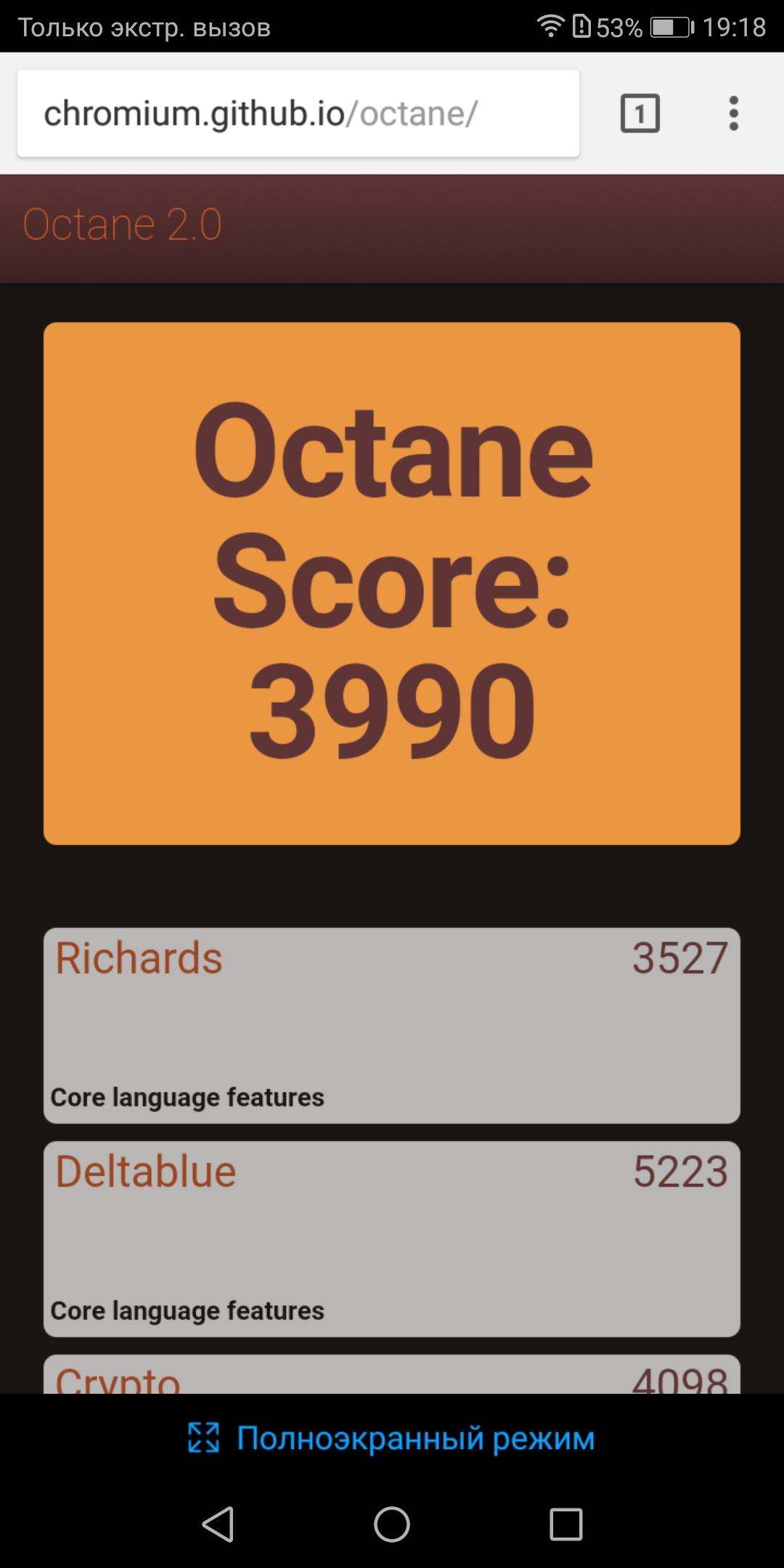 | Google Octane 2 (больше — лучше) | 3990 | 4489 | 3928 | 5036 | 2823 |