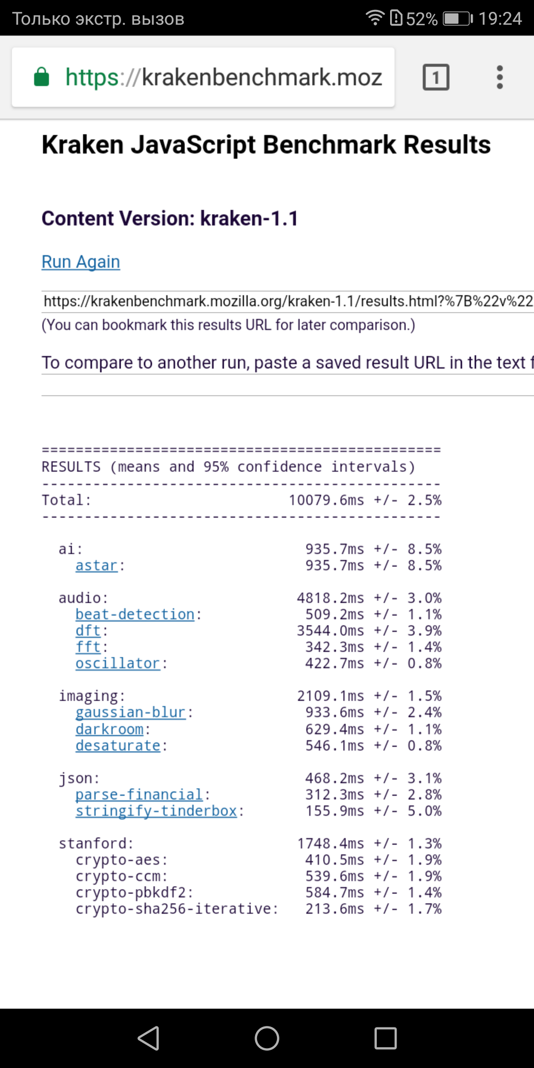 | Mozilla Kraken (мс, меньше — лучше) | 10080 | 9284 | 9992 | 8179 | 12559 |