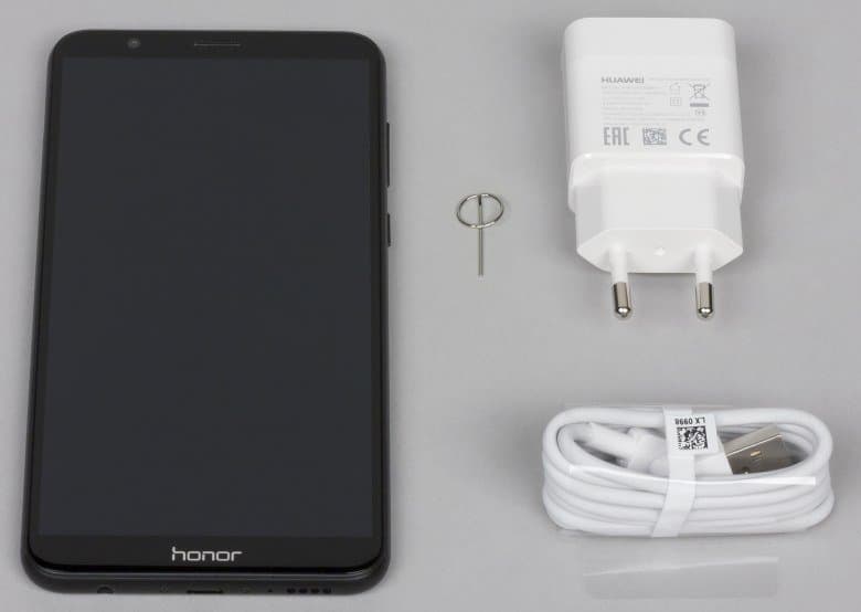Honor 7X поставляется в продажу в лаконично оформленной коробке из твердого матового картона голубого цвета с белым логотипом.