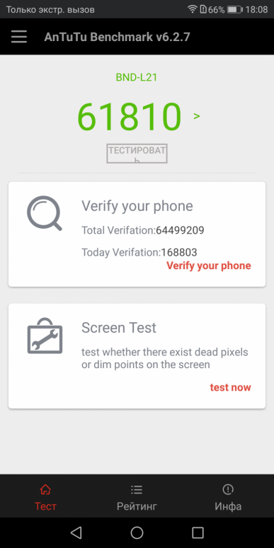 | AnTuTu (v6.x) (больше — лучше) | 61810 | 61638 | 50597 | 63146 | 45287 |