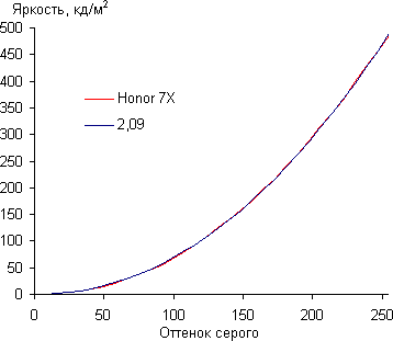 Контрастность (примерно в центре экрана) высокая — порядка 1600:1. Время отклика при переходе черный-белый-черный равно 22 мс (10 мс вкл. + 12 мс выкл.). Переход между полутонами серого 25% и 75% (по численному значению цвета) и обратно в сумме занимает 37 мс. Построенная по 32 точкам с равным интервалом по численному значению оттенка серого гамма-кривая не выявила завала ни в светах, ни в тенях. Показатель аппроксимирующей степенной функции равен 2,09, что немного ниже стандартного значения 2,2. При этом реальная гамма-кривая почти не отклоняется от степенной зависимости:
