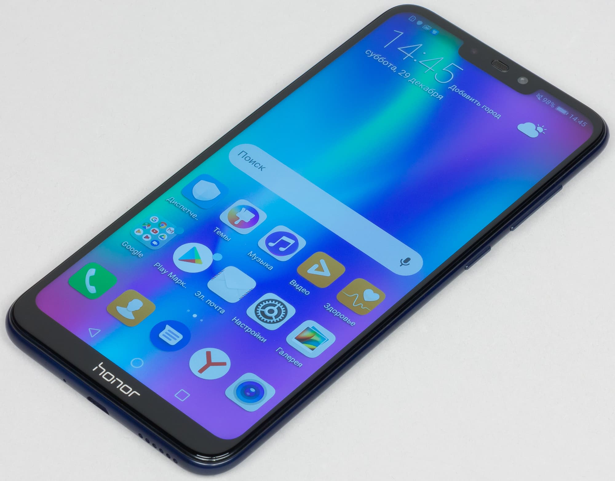 Экран у Honor 8C темнее (яркость по фотографиям 118 против 128 у Nexus 7). Двоение отраженных объектов в экране Honor 8C очень слабое, это свидетельствует о том, что между слоями экрана (конкретнее между внешним стеклом и поверхностью ЖК-матрицы) нет воздушного промежутка (экран типа OGS — One Glass Solution). За счет меньшего числа границ (типа стекло/воздух) с сильно различающимися коэффициентами преломления такие экраны лучше смотрятся в условиях интенсивной внешней засветки, но вот их ремонт в случае потрескавшегося внешнего стекла обходится гораздо дороже, так как менять приходится экран целиком. На внешней поверхности экрана есть специальное олеофобное (жироотталкивающее) покрытие, но по эффективности оно хуже, чем у Nexus 7. И все же следы от пальцев удаляются легче, а появляются не так быстро как в случае обычного стекла.