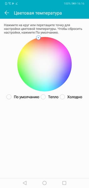 В этом устройстве есть возможность скорректировать цветовой баланс с помощью регулировки оттенка на цветовом круге.