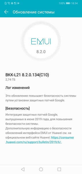 В качестве программной платформы используется Google Android версии 8.1 и собственная быстрая и хорошо оптимизированная оболочка Huawei EMUI версии 8.2. Все это уже не самые свежие версии, но обновлений смартфон пока не получал.