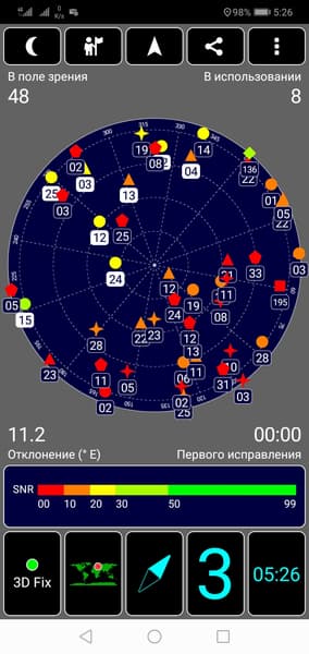 Навигационный модуль работает с GPS (с A-GPS), Глонасс, Galileo, и китайской Beidou. Первые спутники при холодном старте обнаруживаются мгновенно, и точность позиционирования не вызывает претензий. Магнитный компас, необходимый для работы навигационных программ, в аппарате имеется.