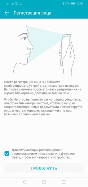 Есть возможность разблокировки по лицу, но основанная на работе одной лишь фронтальной камеры, что не может обеспечить максимальный уровень защиты. Распознавание происходит даже в полной темноте, пусть и чуть медленнее. Для этого экран поднимает яркость на максимальный уровень, подсвечивая лицо при разблокировке.