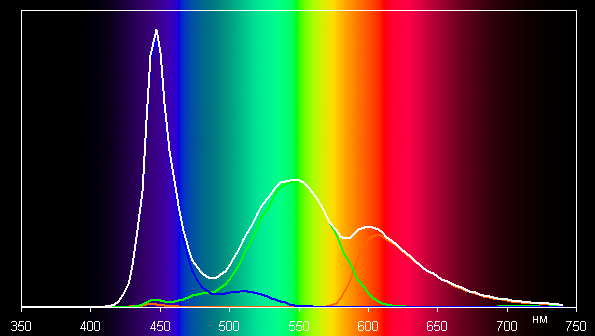 Спектры показывают, что светофильтры матрицы в умеренной степени подмешивают компоненты друг к другу: