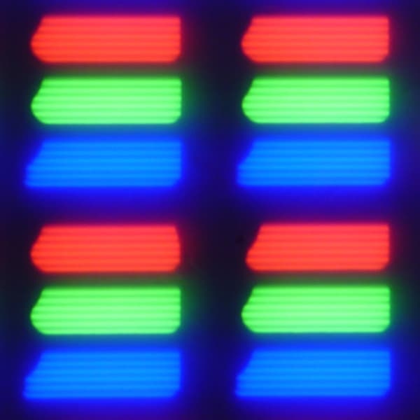 В данном смартфоне используется матрица типа IPS. Микрофотографии демонстрируют типичную для IPS структуру субпикселей: