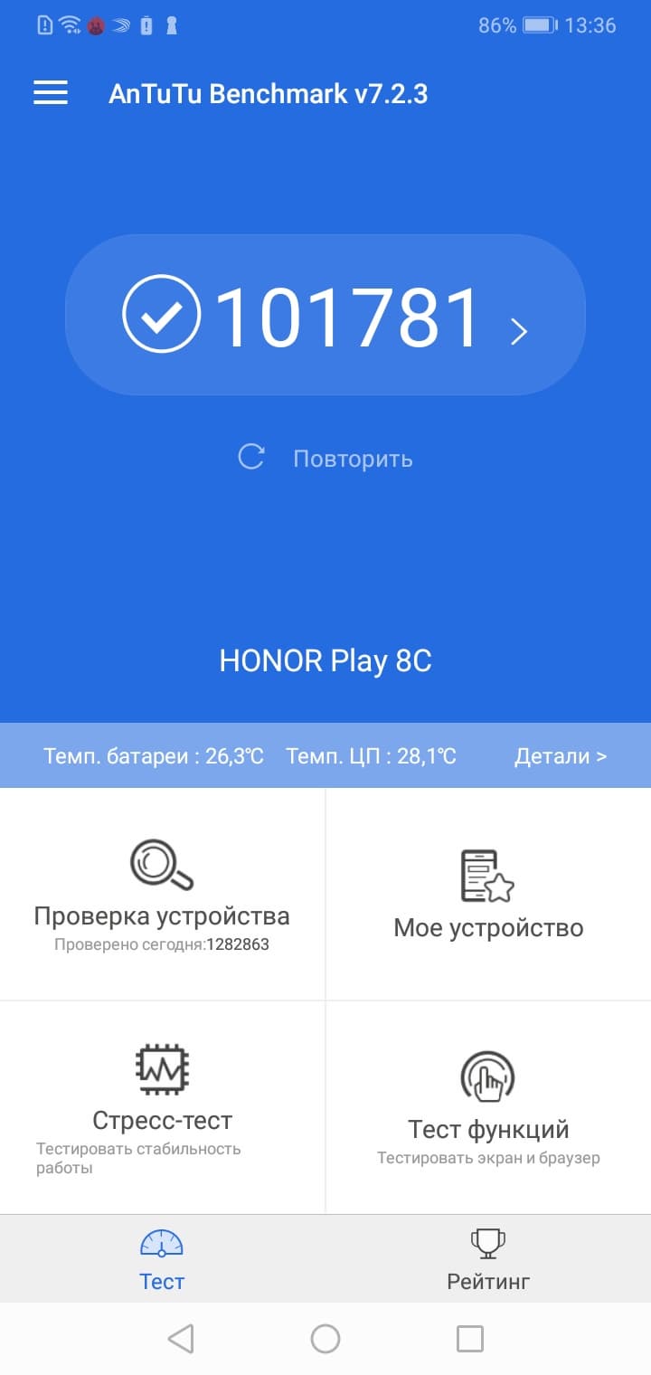 | Honor 8C (Qualcomm Snapdragon 632) | Samsung Galaxy M20 (Exynos 7904) | Huawei P Smart 2019 (HiSilicon Kirin 710) | Яндекс.Телефон (Qualcomm Snapdragon 630) | Realme 3 (Mediatek Helio P60) | |