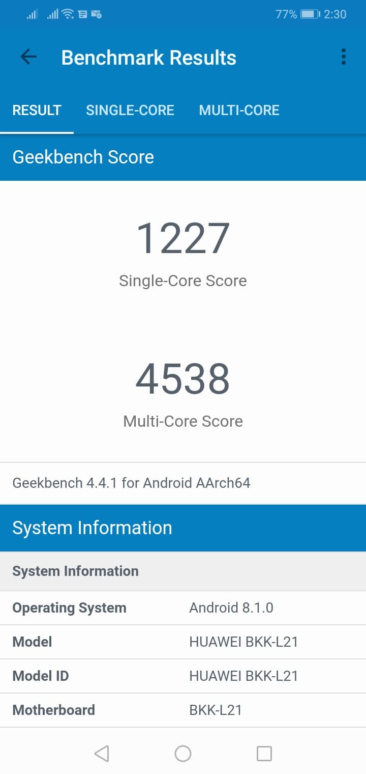 - Операционная система Android 8.1 (Oreo); EMUI 8.2