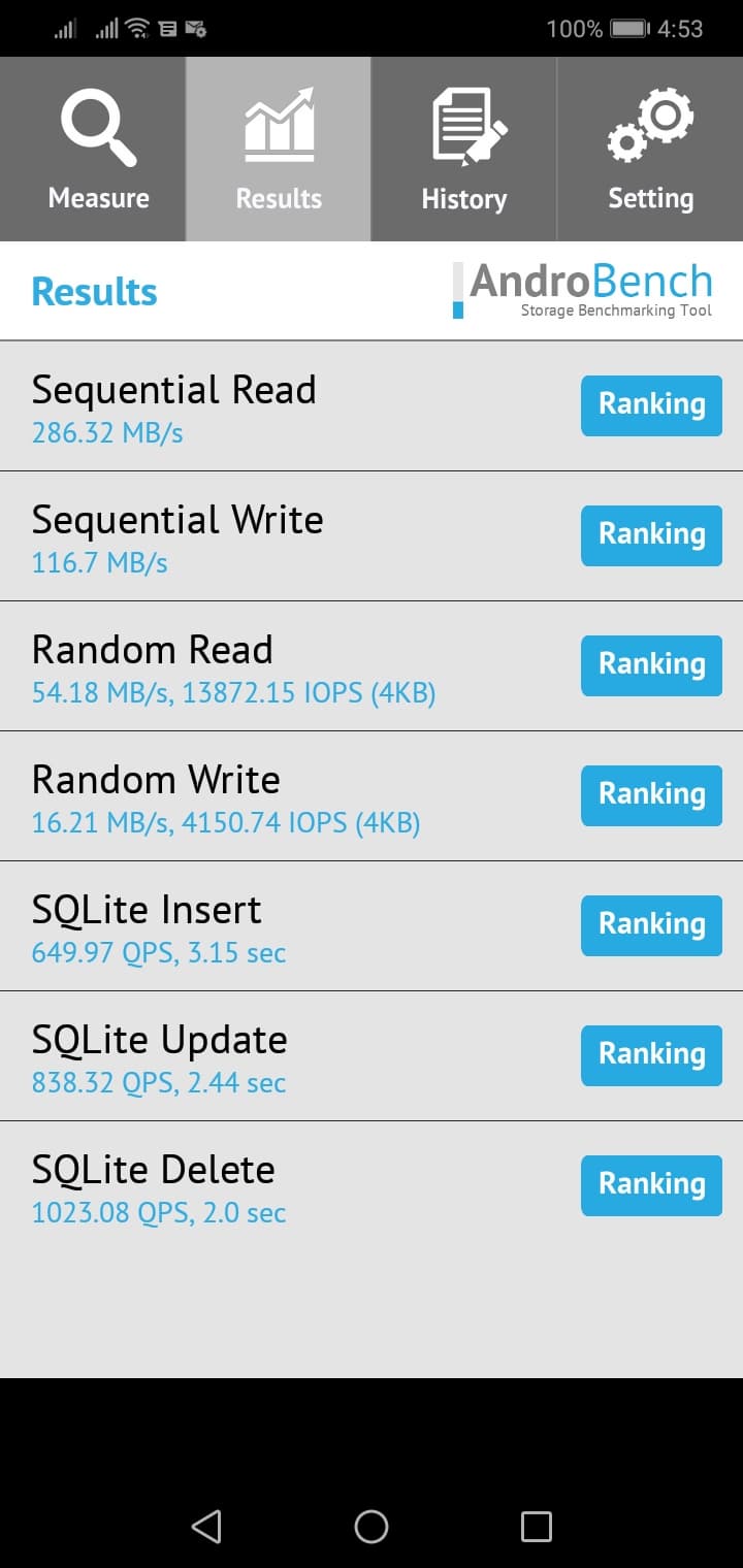 Результаты теста AndroBench на скорость работы с памятью:
