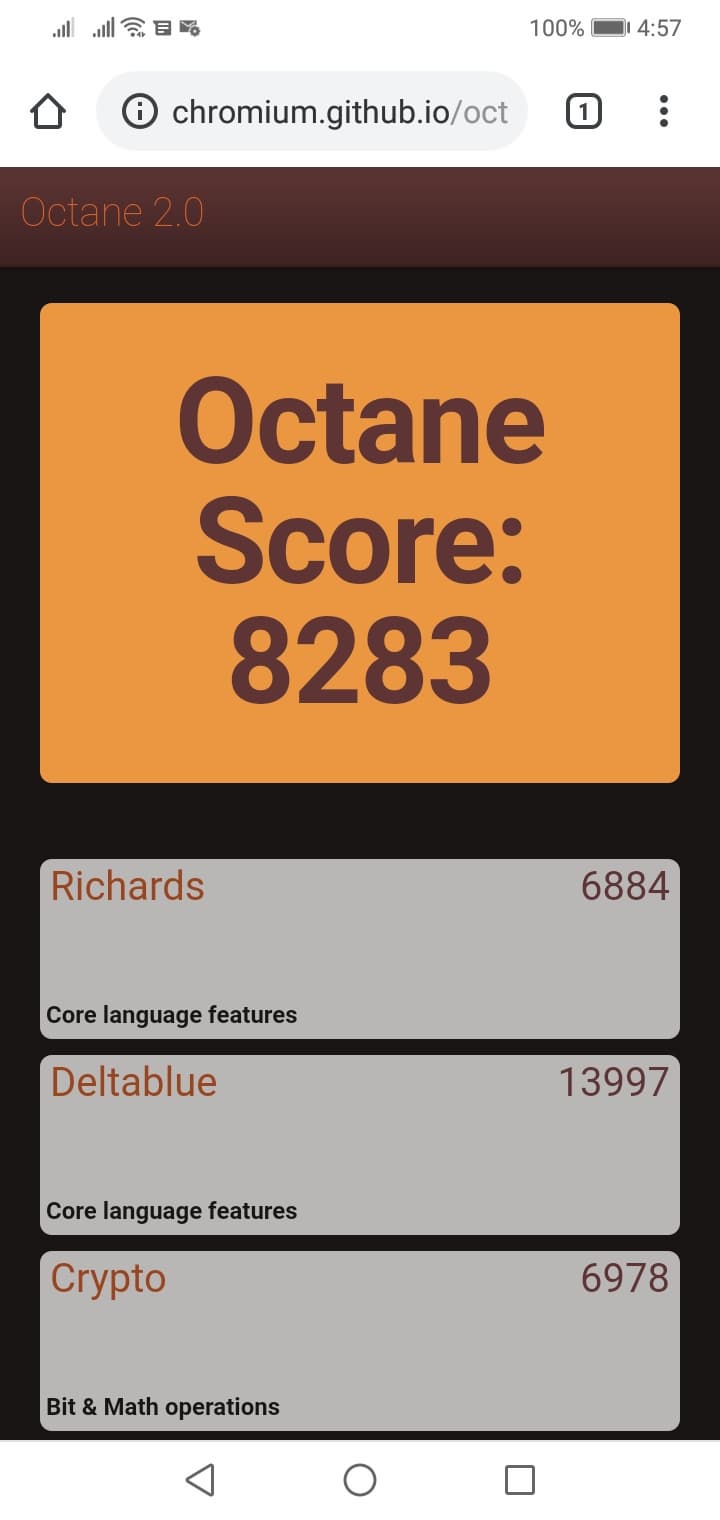 Что касается бенчмарков для оценки скорости движка javascript, то стоит всегда делать скидку на то, что в них результаты существенно зависят от браузера, в котором запускаются, так что сравнение может быть истинно корректным только на одинаковых ОС и браузерах, а такая возможность имеется при тестировании не всегда. В случае с ОС Android мы всегда стараемся использовать Google Chrome.