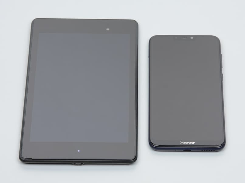 Лицевая поверхность экрана выполнена в виде стеклянной пластины с зеркально-гладкой поверхностью, устойчивой к появлению царапин. Судя по отражению объектов, антибликовые свойства экрана лучше, чем у экрана Google Nexus 7 (2013) (далее просто Nexus 7). Для наглядности приведем фотографию, на которой в выключенных экранах отражается белая поверхность (слева — Nexus 7, справа — Honor 8C, далее их можно различать по размеру):