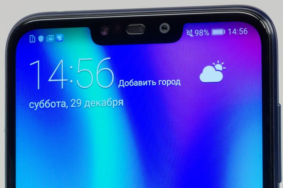 Honor 8C оснащен дисплеем IPS с размерами 68×143 мм при диагонали 6,26 дюйма, разрешение — 1520×720 (соотношение сторон 19:9), что дает плотность точек около 269 ppi. Ширина рамки с боков составляет 3,5 мм, отступ снизу — 10 мм, сверху — 5 мм (не считая, понятно, «челки»).